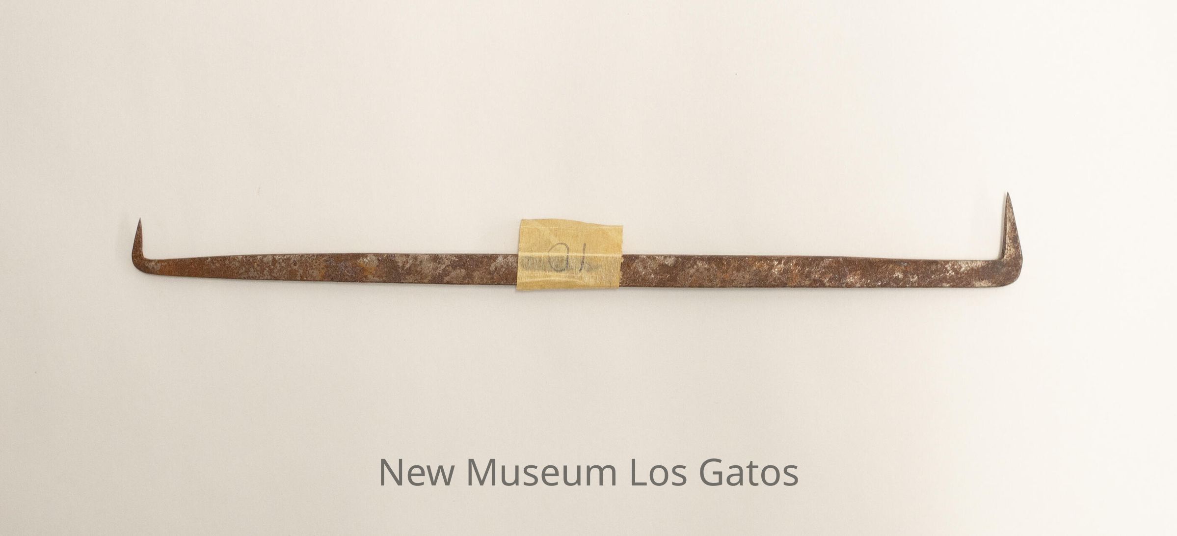 A thin, square metal bar with two hooks/points, one at each end. The points face the same direction, and one is slightly longer than the other.
