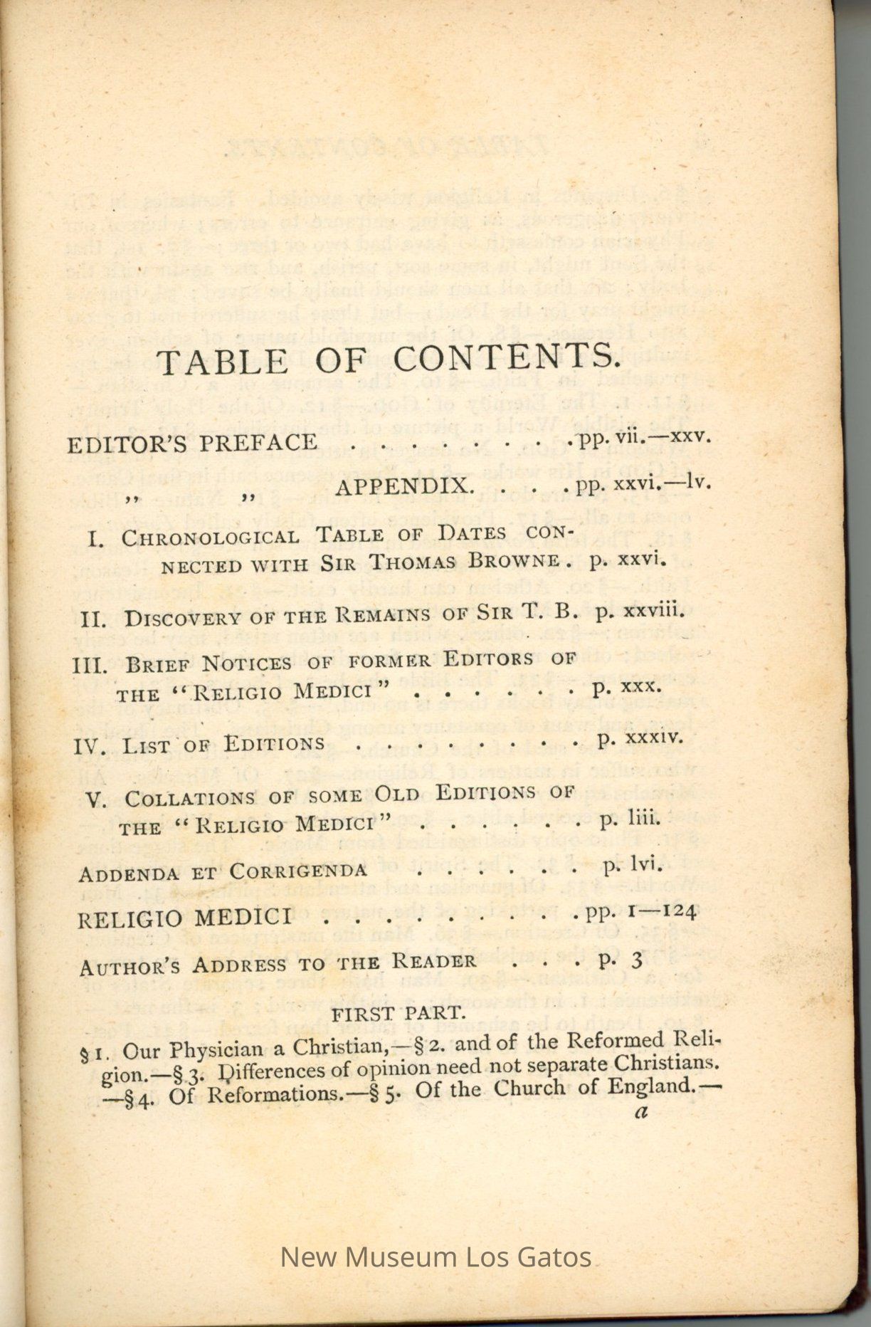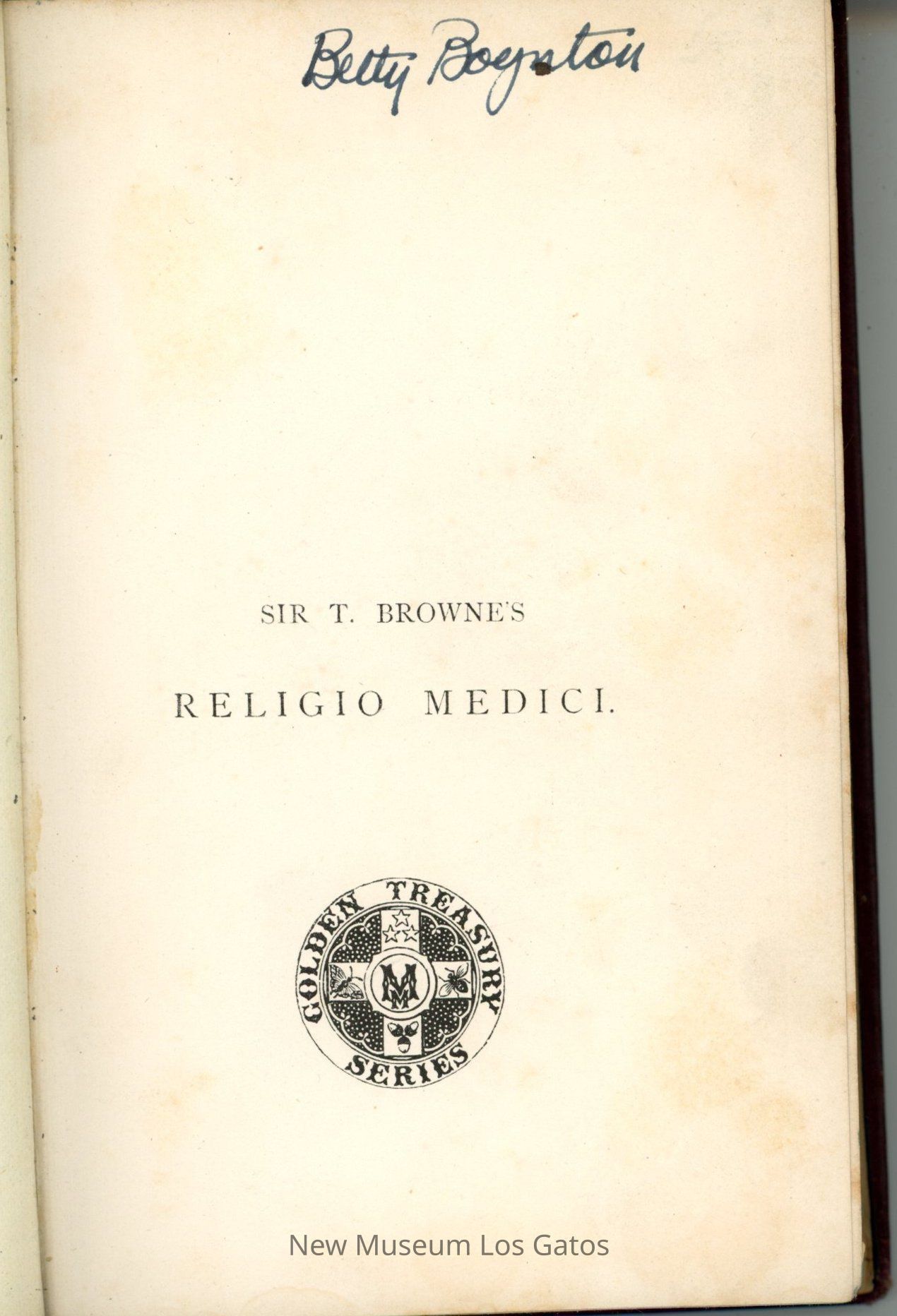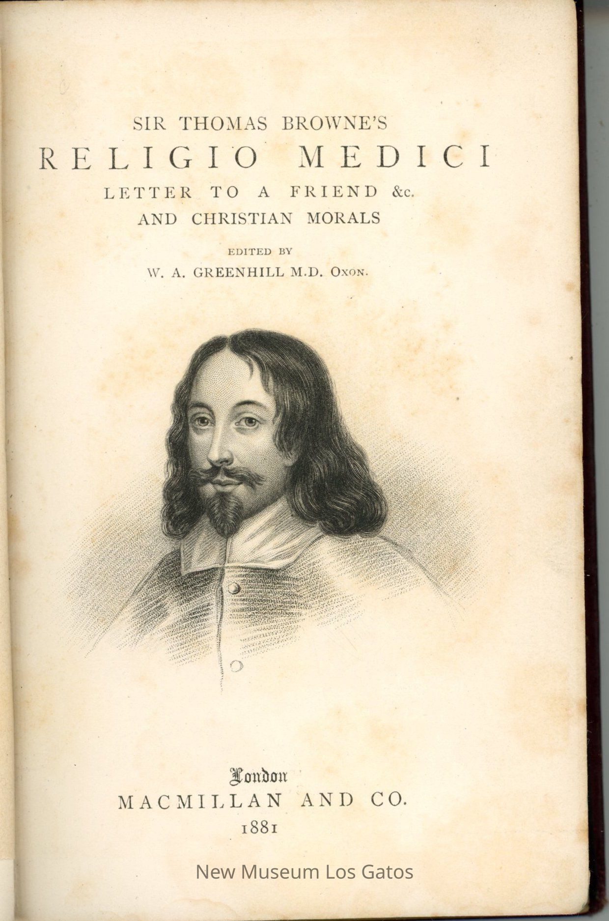 A small brown fabric-bound book with writings from Sir Thomas Browne.Collection
