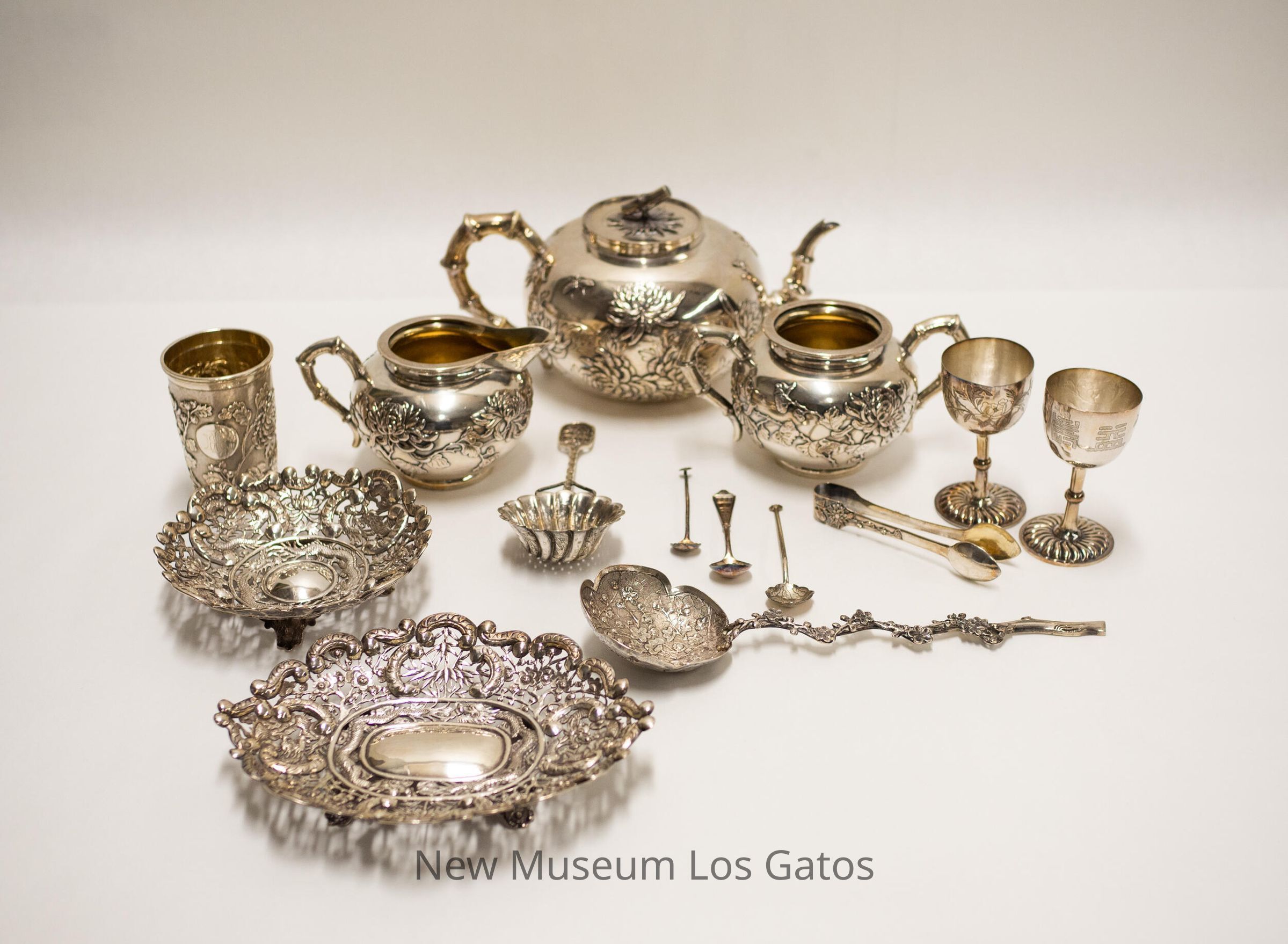SILVER Date: ca. 1900 / This silver was made by Luen Wo, one of the leading silversmiths in Shanghai in the late 19th and 20th centuries. All of the pieces in the are stamped with Luen Wo's makers mark. Wo operated from various premises in Nanking Road (Nanjing Road) in Shanghai in the late nineteenth century and early part of the twentieth century. His firm was prolific and also traded other items such as diamonds, jewelry, and embroideries. / This silver once belonged to one-time Los Gatos resident Lochie Rankin, the first unmarried woman missionary to China. Rankin was born in Murfreesboro, Tennessee on January 20, 1851 before moving to Milan, Tennessee with her parents and sister in. In 1876, at age 25, she volunteered to teach at The Indian Mission Schools in Oklahoma before joining the Woman's Foreign Missionary Society of the United Episcopal Methodist Church South (UEMCS) in 1878. She moved to China and was trained by the wife of a missionary at the Clopton Boarding School in Shanghai. Upon completing her training in 1879 Rankin's sister Dorie joined her in China and they moved to Nanxiang to open a girl's school. After her sister's death in 1885, Rankin moved to Huchow, China in 1909 to open a boy's school before retiring to Tennessee in 1926. She died and was buried in Nashville on September 14, 1929.