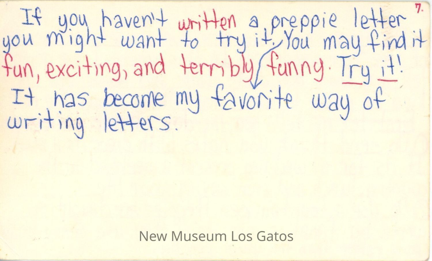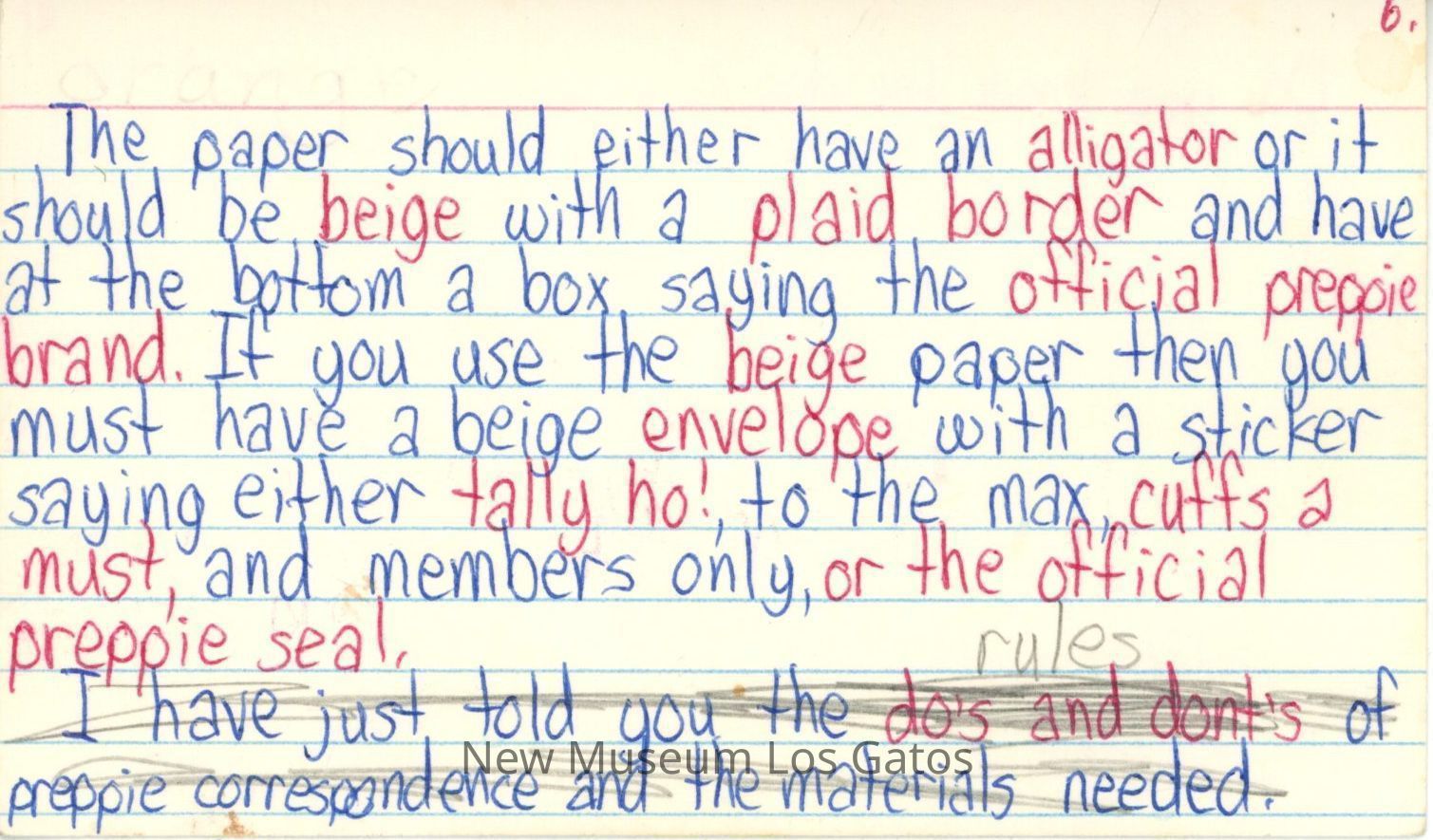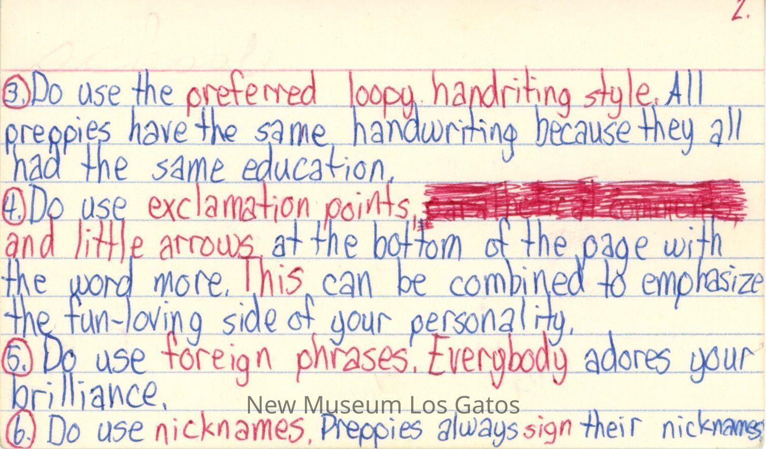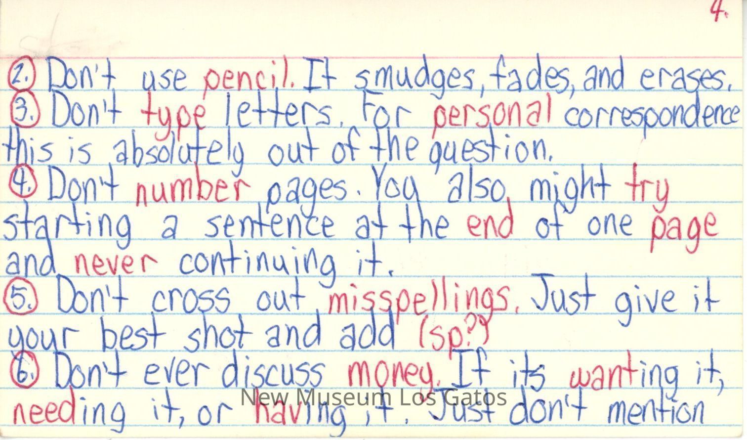 Seven lined index cards with what appears to be a speech or presentation script, written in blue and red ink. The last index card, despite being on the same topic, appears to be from another draft.Collection