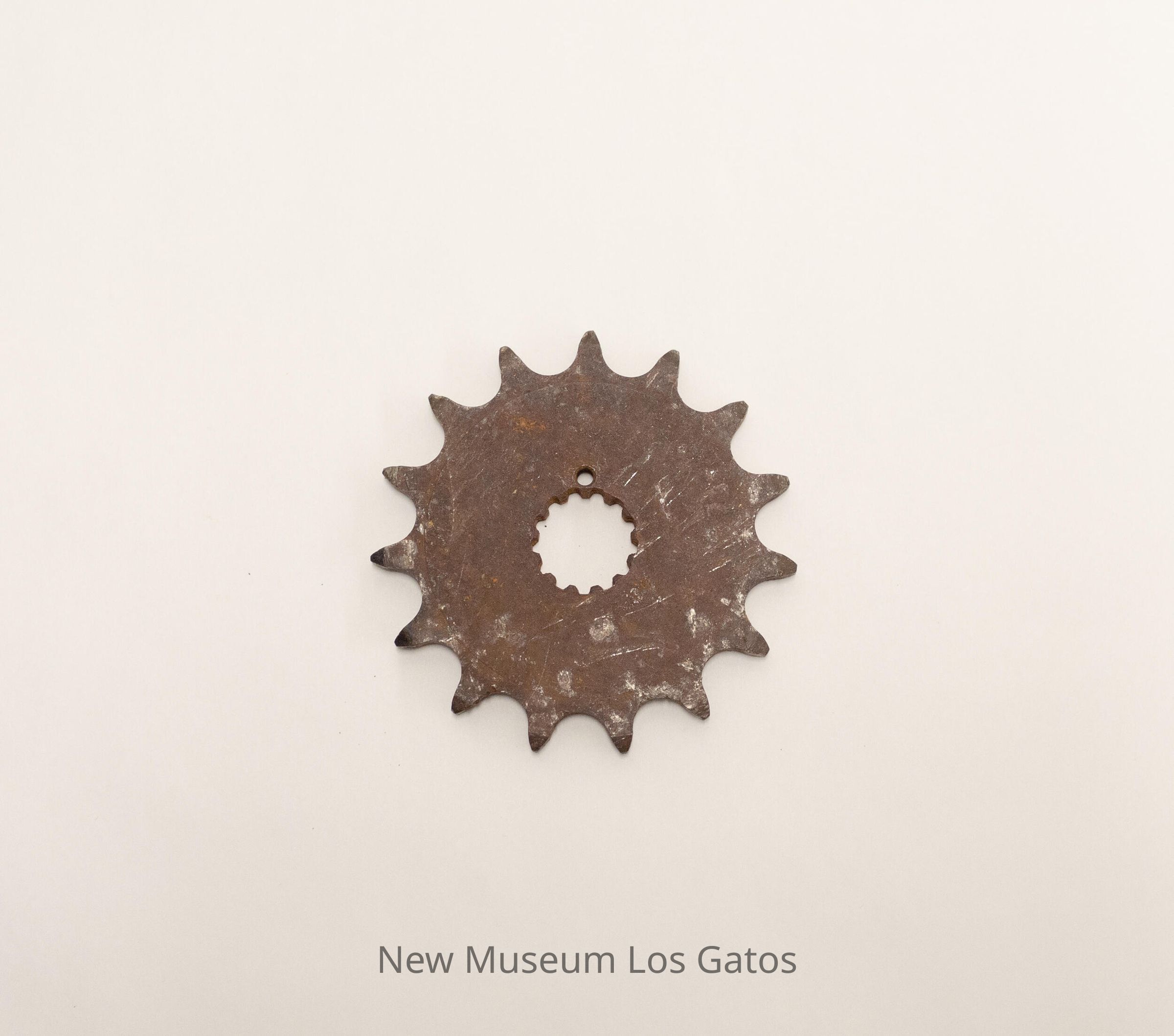 Metal sprocket with fifteen teeth.