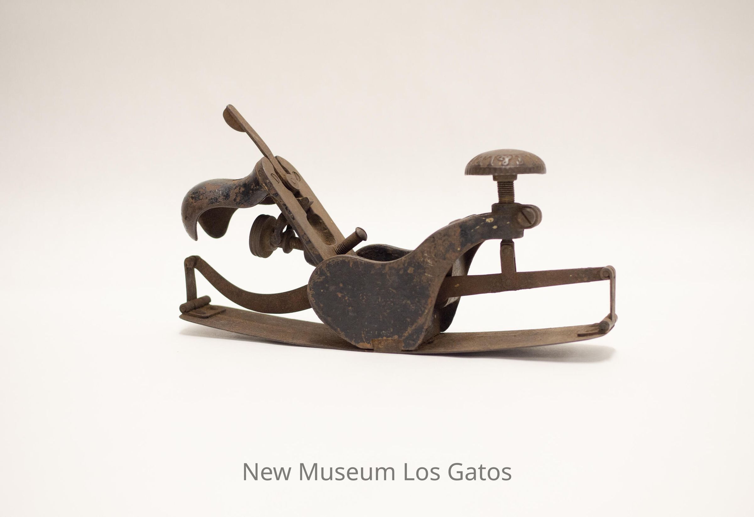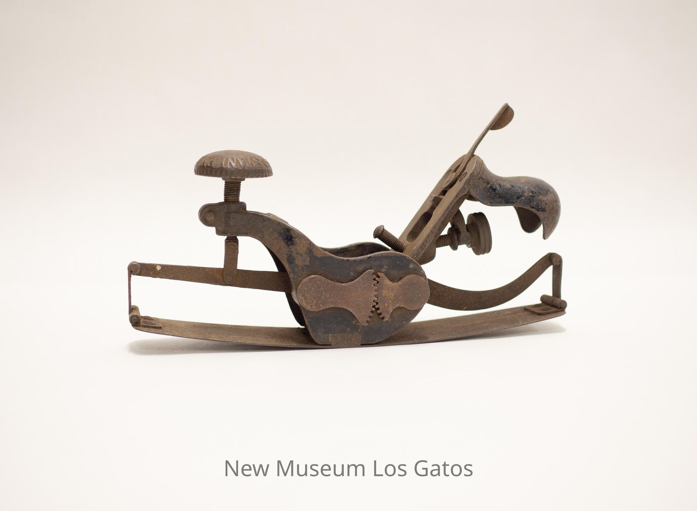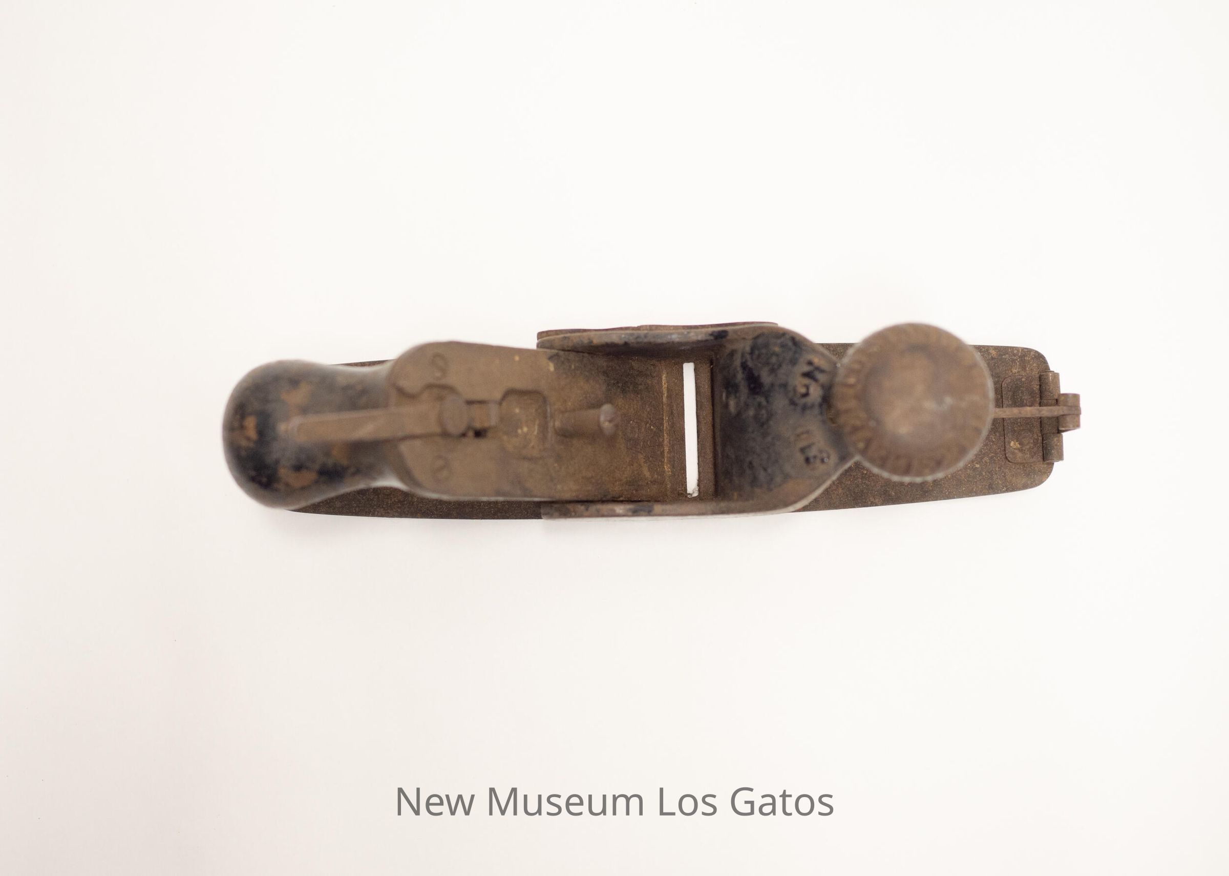 Antique metal plane compass, with "Stanley Rule & Level Co" engraved on the knob.