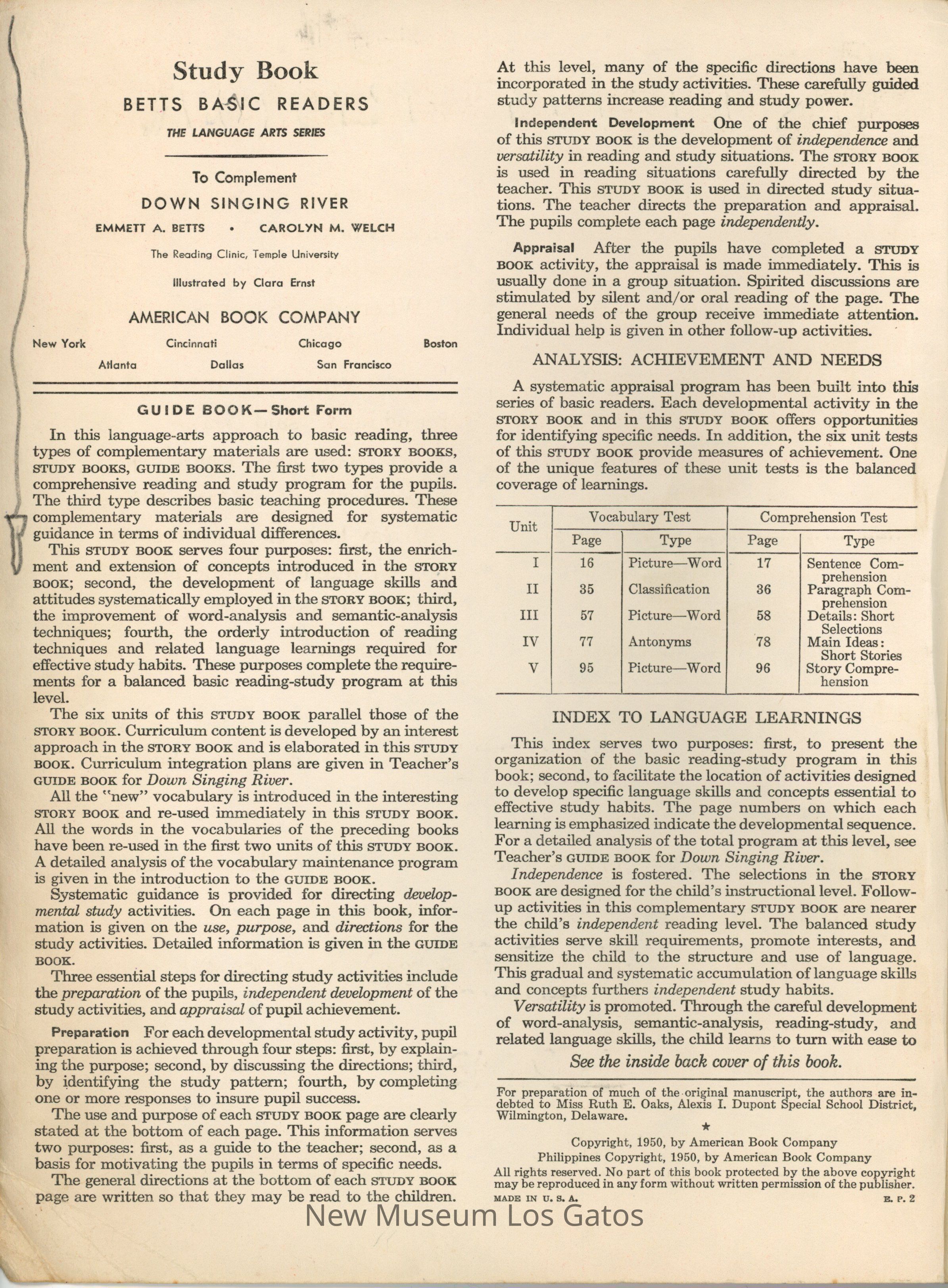 Betts Basic Readers Study Book to complement Down Singing RiverDescription