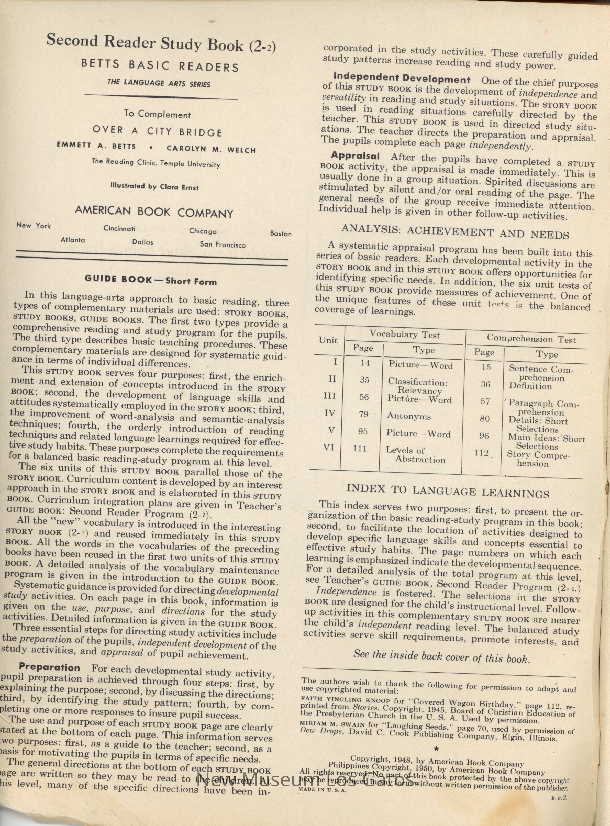 Betts Basic Readers Second Reader Study Book (2-2) to Complement Over a City BridgeDescription