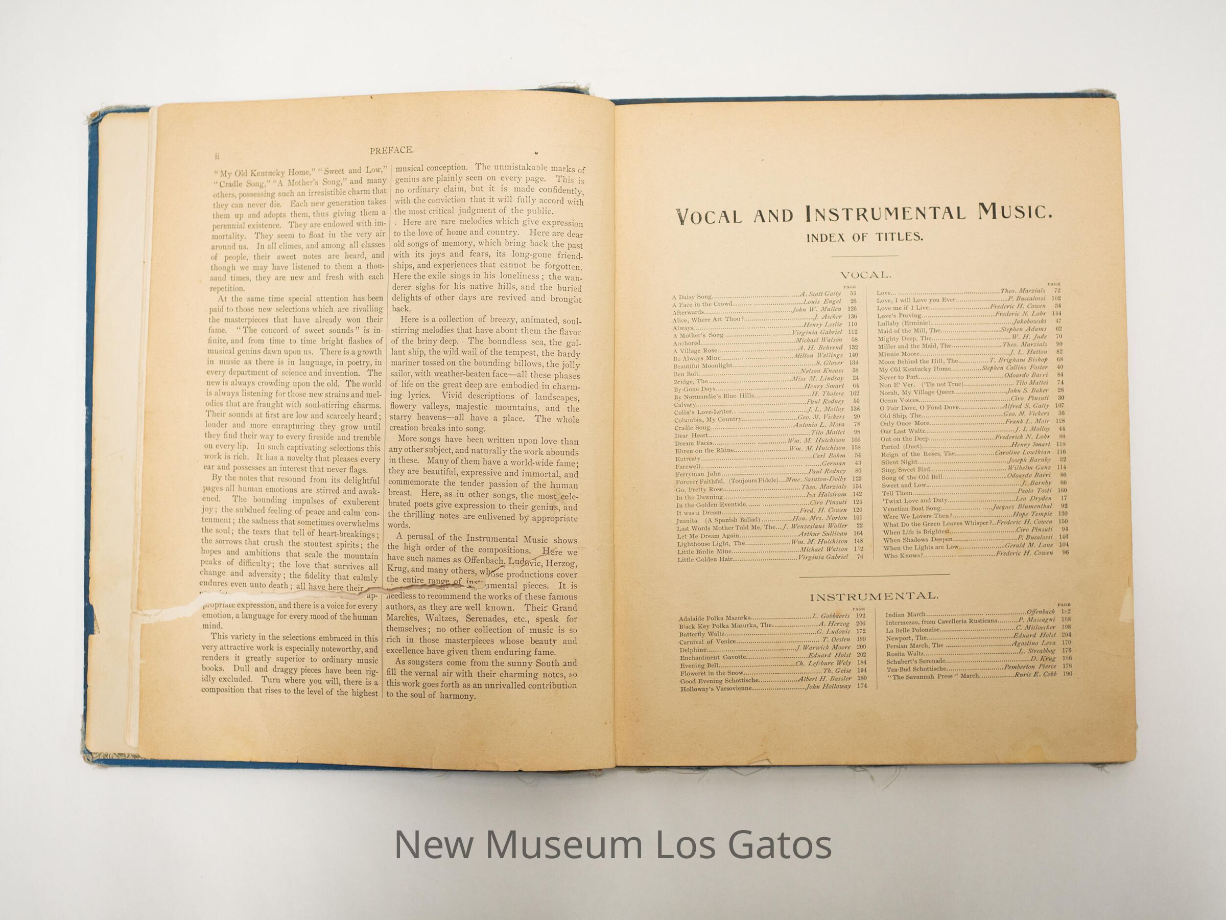 A blue, fabric-bound book that contains sheet music.Collection