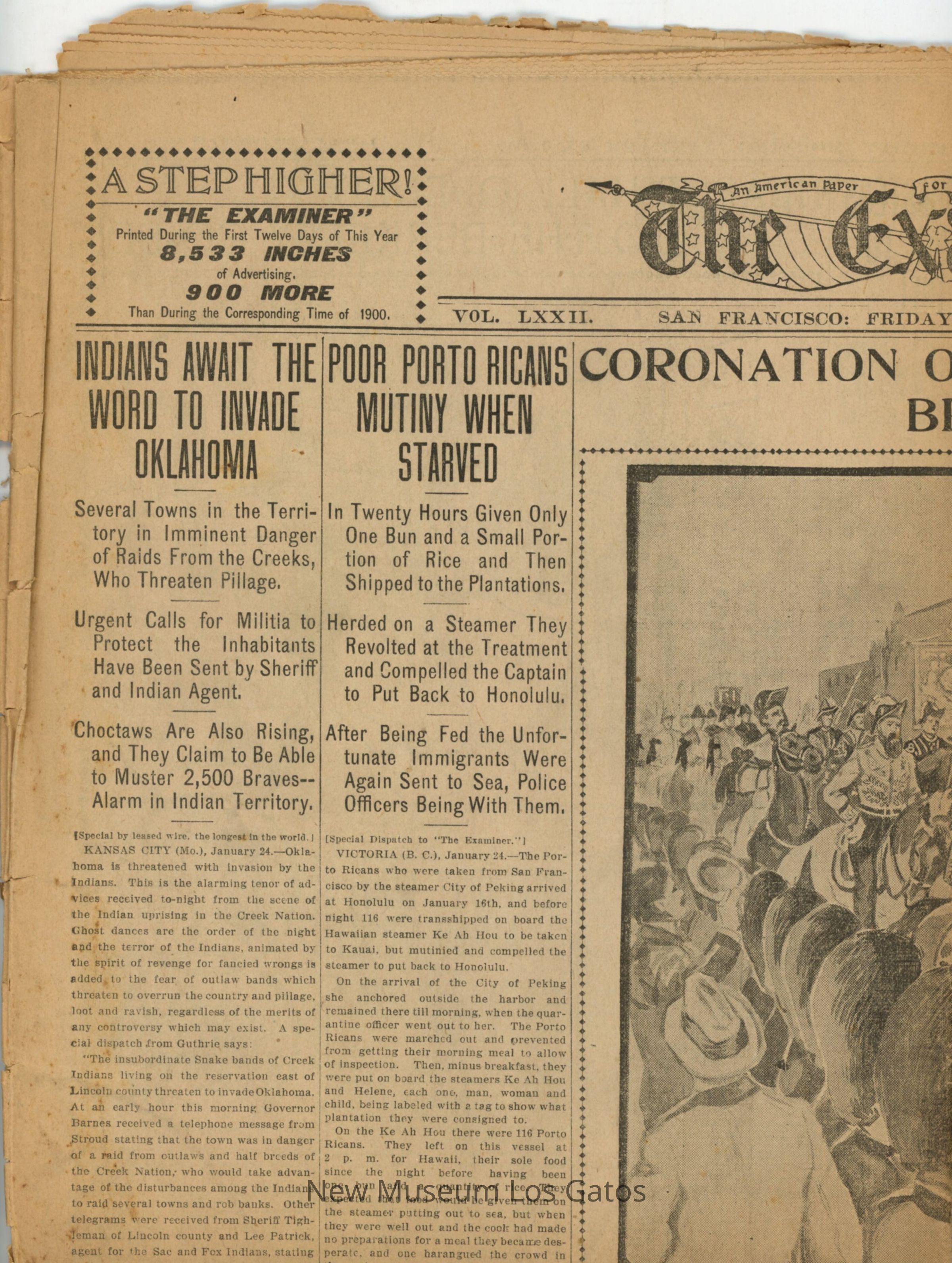 A published volume of The Examiner from January 25th, 1901. The front page story discusses the coronation of King Edward VII of Great Britain in the upcoming year.Collection