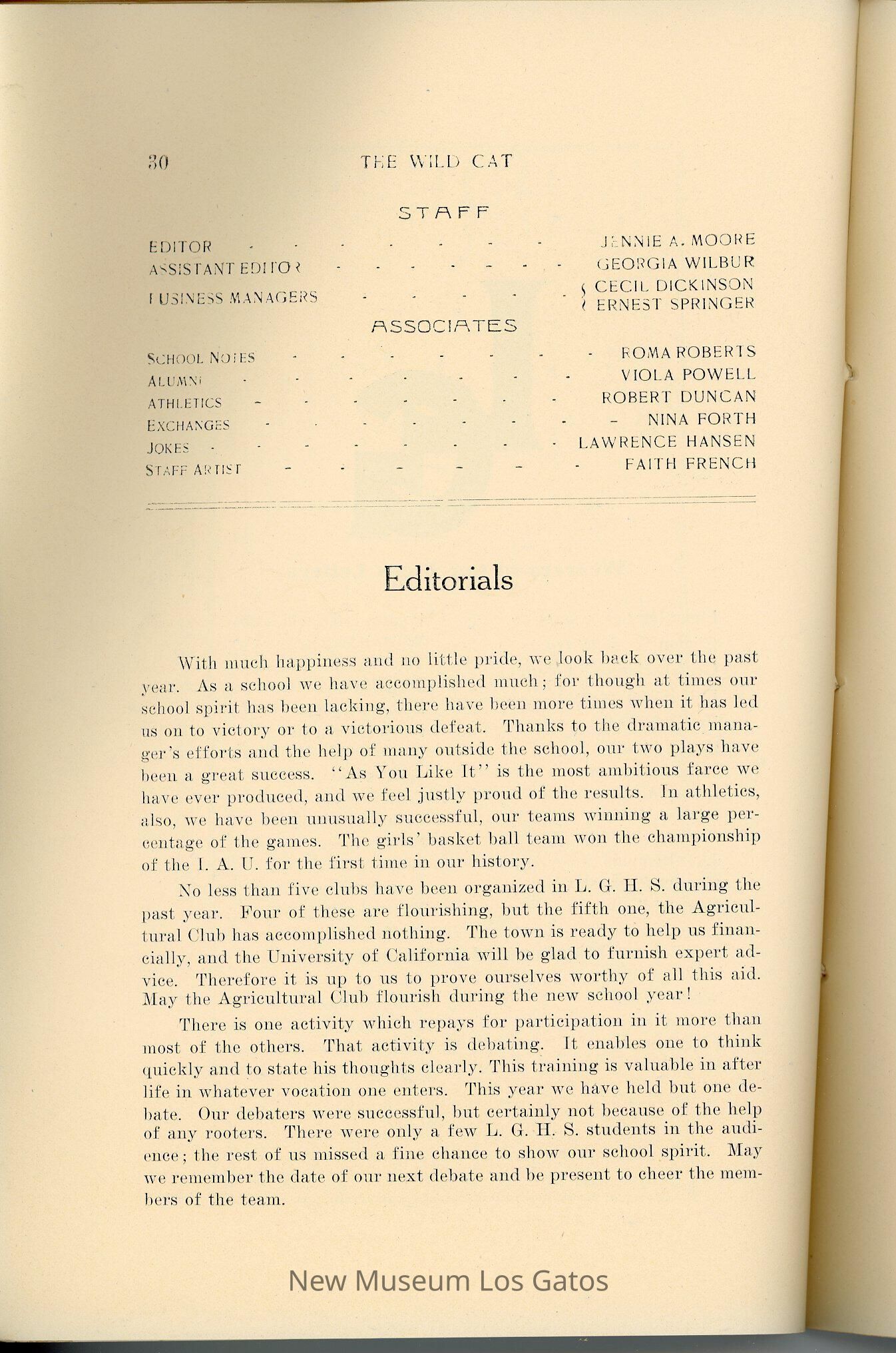 The Wildcat, a literary magazine/yearbook published by the students of Los Gatos High School. Volume number, issue number, and specific month are not specified in this particular issue.