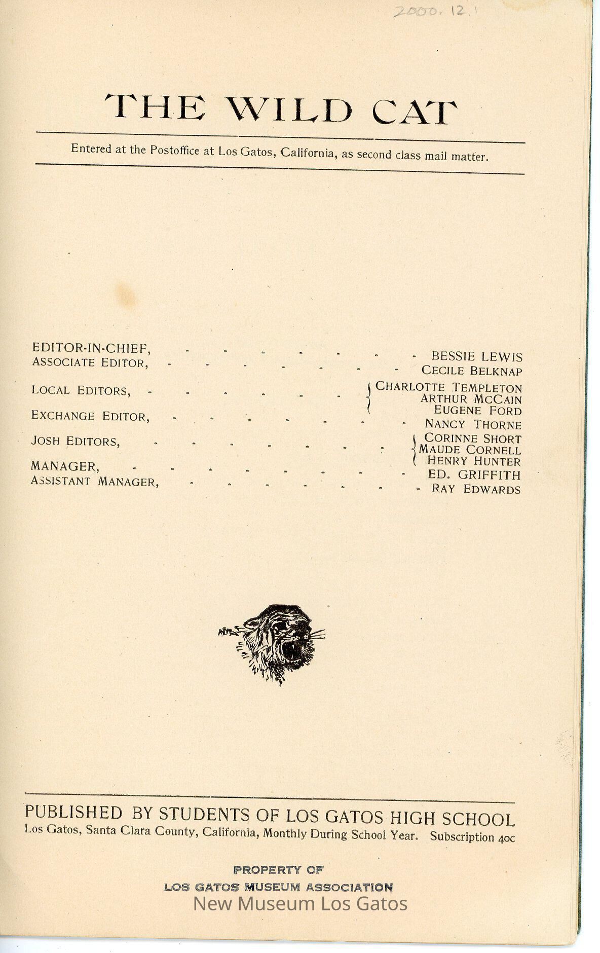 PROPERTY OF LOS GATOS MUSEUM ASSOCIATION