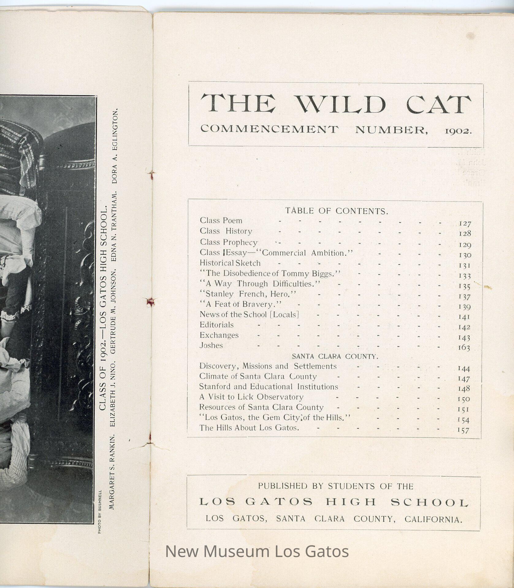 The Wildcat, a literary magazine/yearbook published by the students of Los Gatos High School, Volume 4, Number 9, published June 1902.