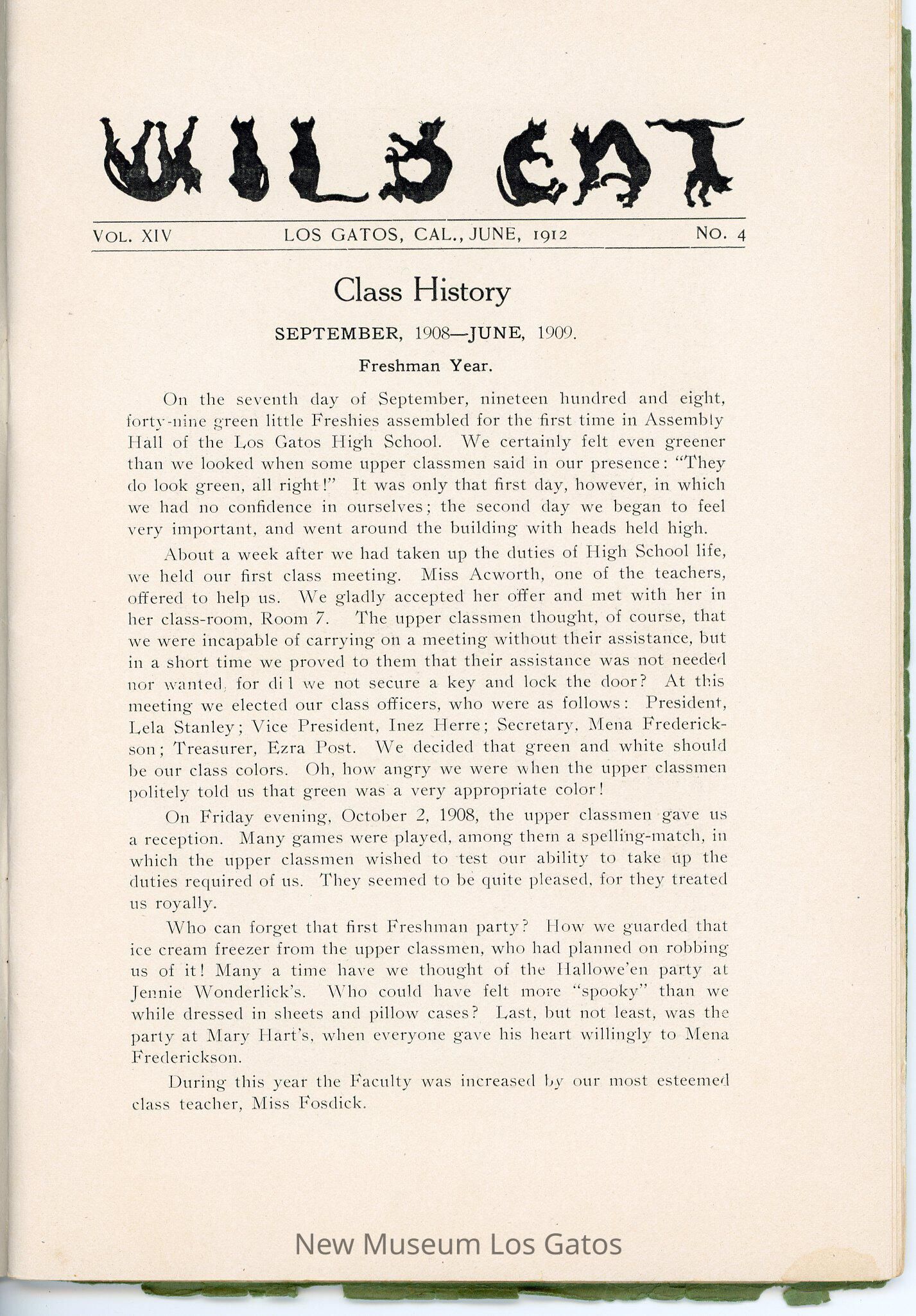 The Wildcat, a literary magazine/yearbook published by the students of Los Gatos High School, Volume 14, Number 4, published June 1912.