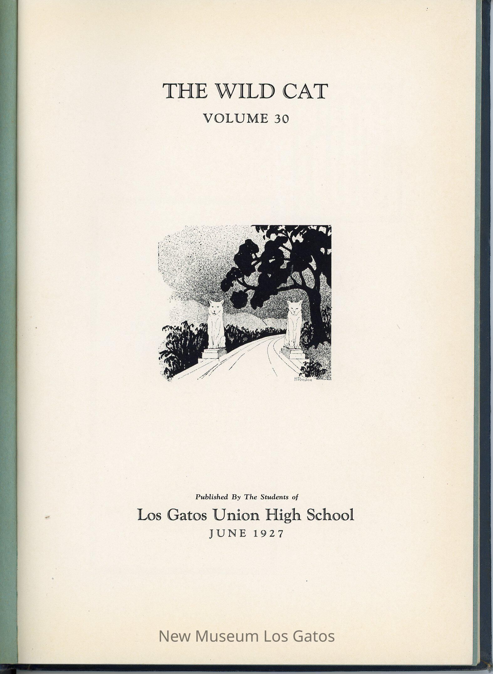 The Wildcat, a hardcover literary magazine/yearbook published by the students of Los Gatos High School in June 1927, volume number 30. Issue number is not specified in this particular issue.