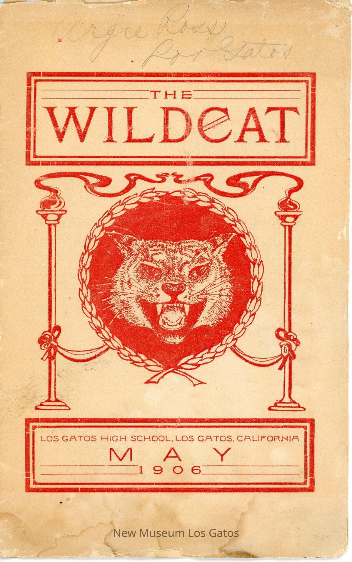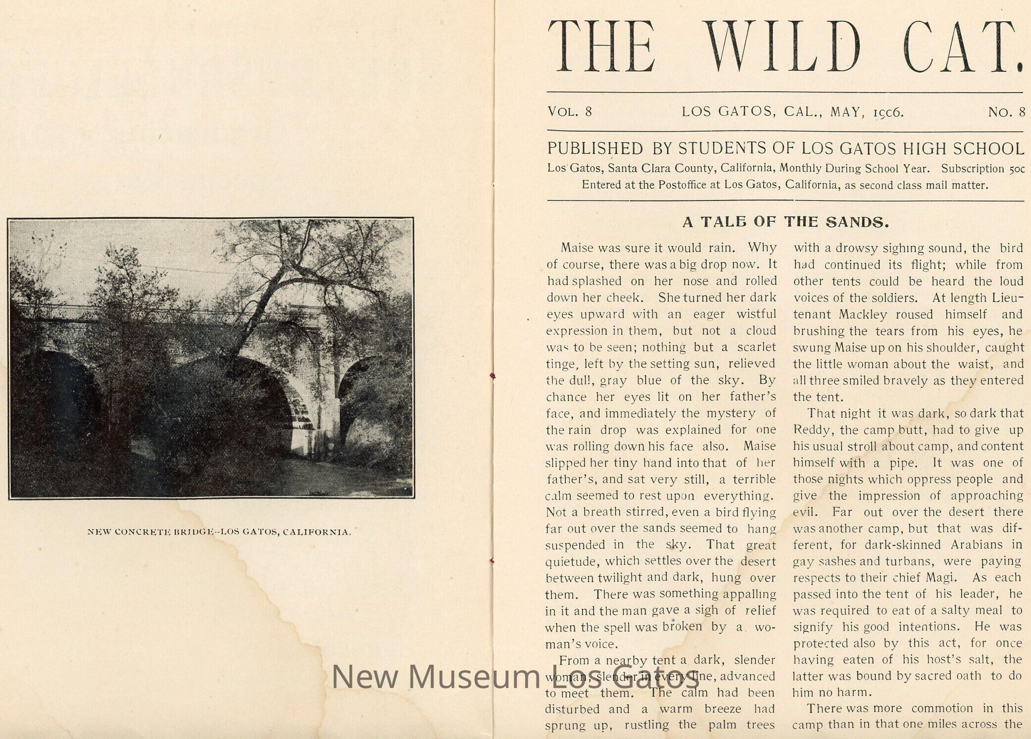 The Wildcat, a literary magazine/yearbook published by the students of Los Gatos High School, Volume 8, Number 8, published May 1906.