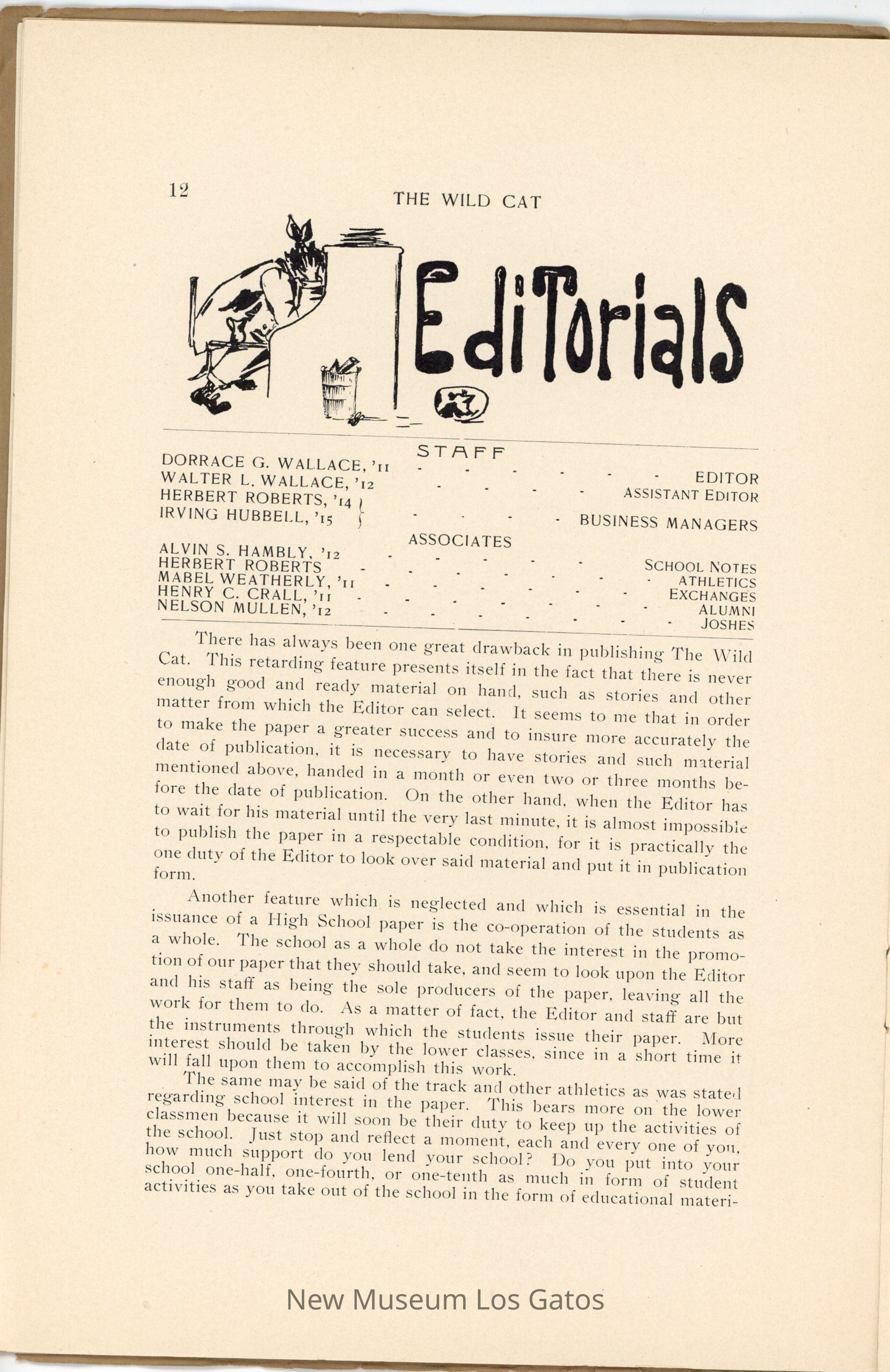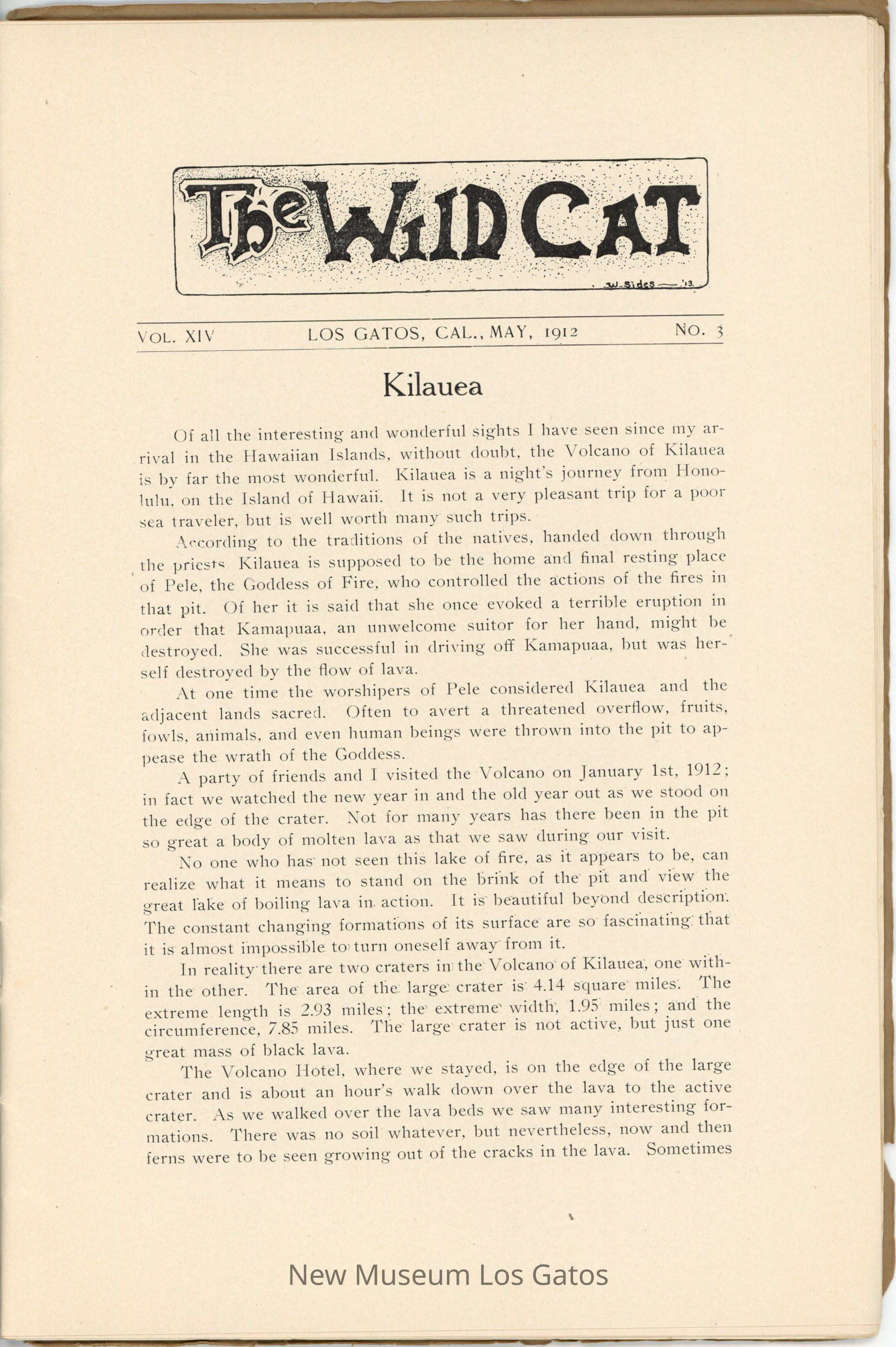 The Wildcat, a literary magazine/yearbook published by the students of Los Gatos High School in May 1912, volume number 14, issue number 3.