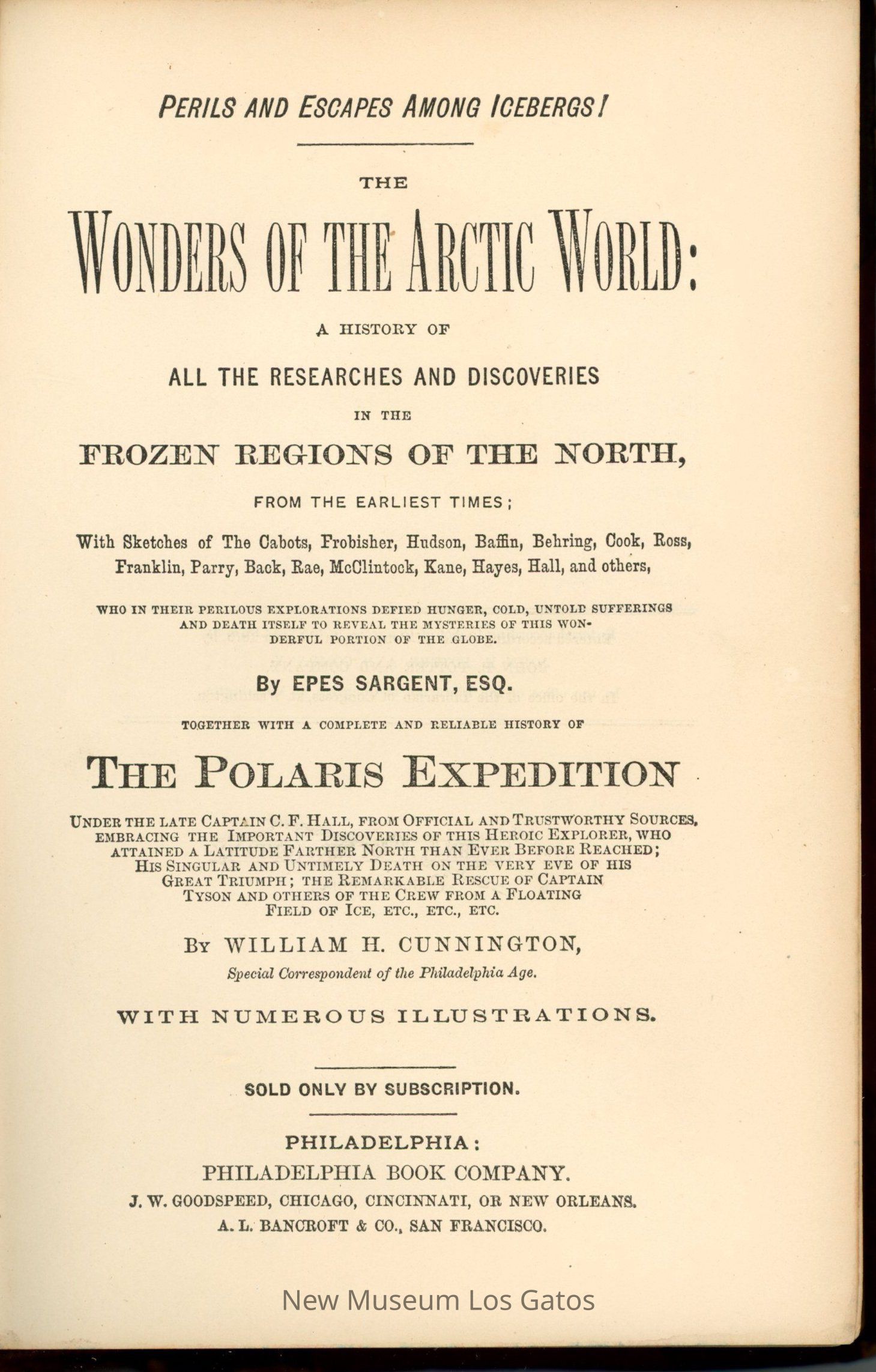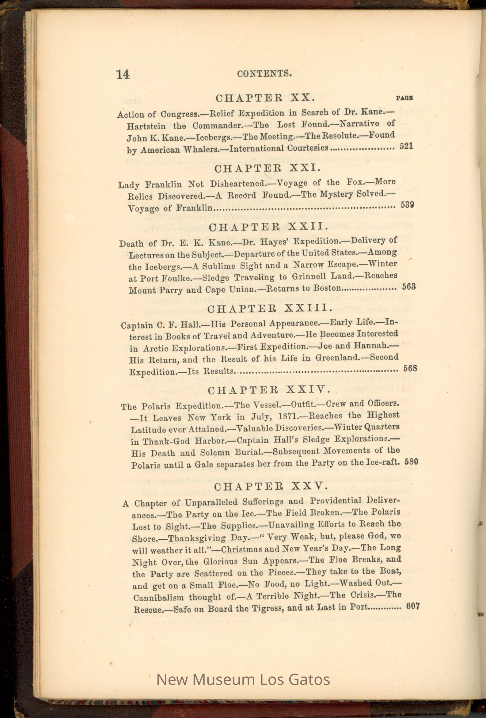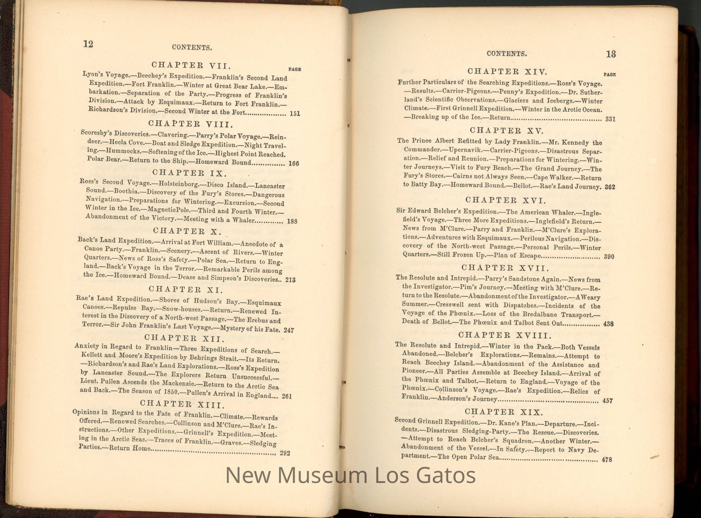 A two-tone red and black fabric and leather-bound book about early expeditions to the Arctic region.Collection
