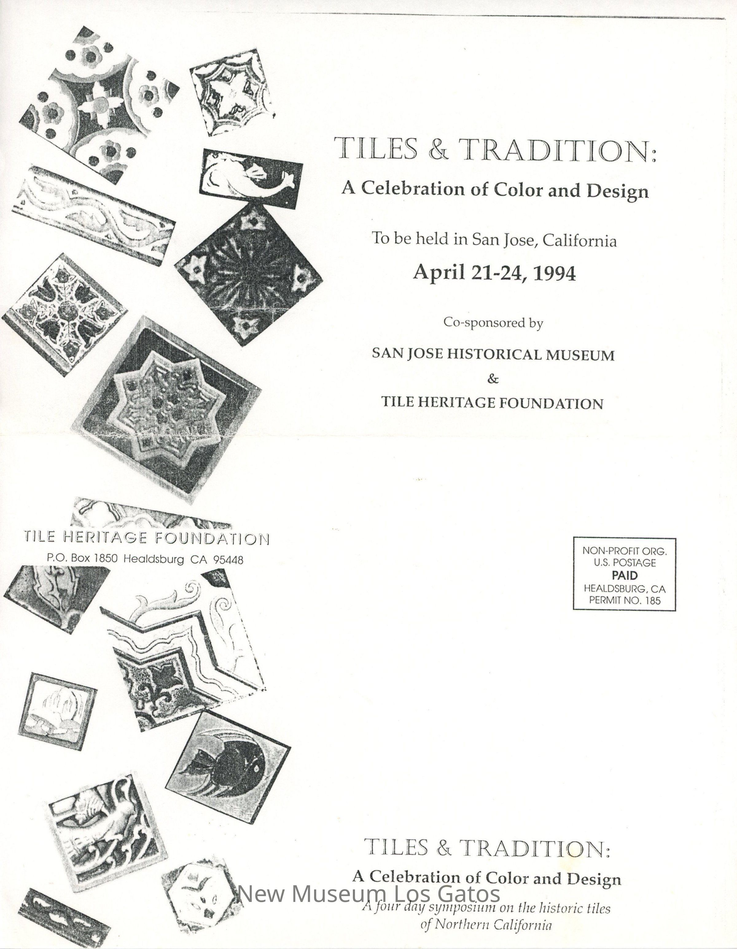 Photocopy of a mail-box flyer for Tiles & Tradition: A Celebration of Color and Design, held by the Tile Heritage Foundation and the San Jose Historical Museum.Collection