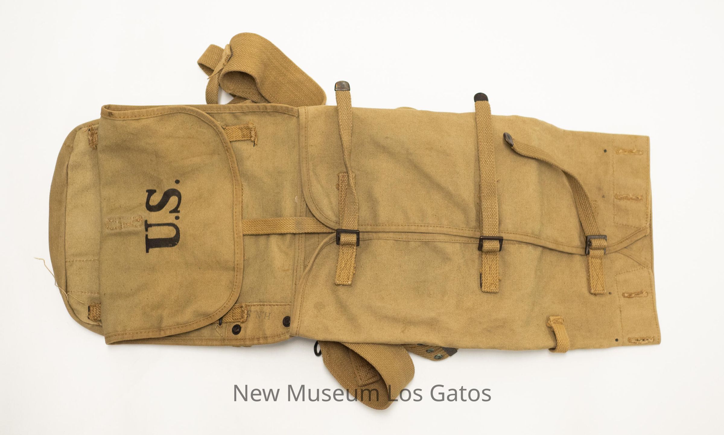 On the underside of a flap of fabric between the pocket and the backTranscription