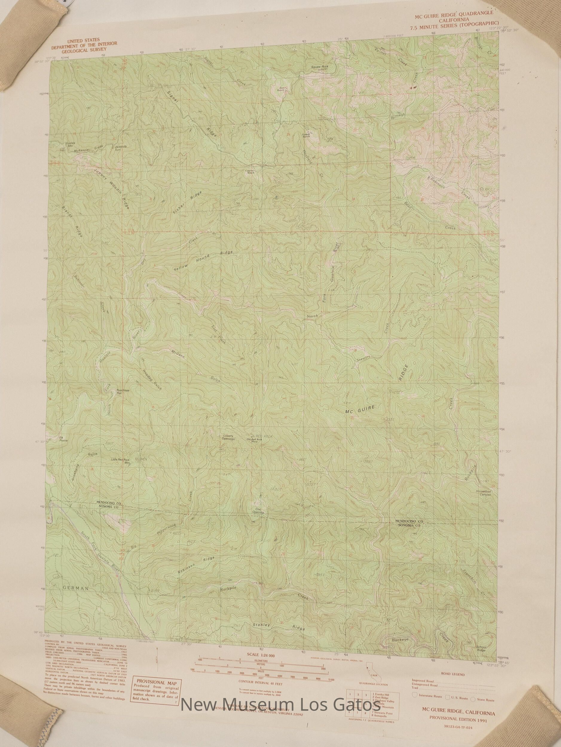 A topographical map depicting the McGuire Ridge in Sonoma and Mendocino counties.Collection