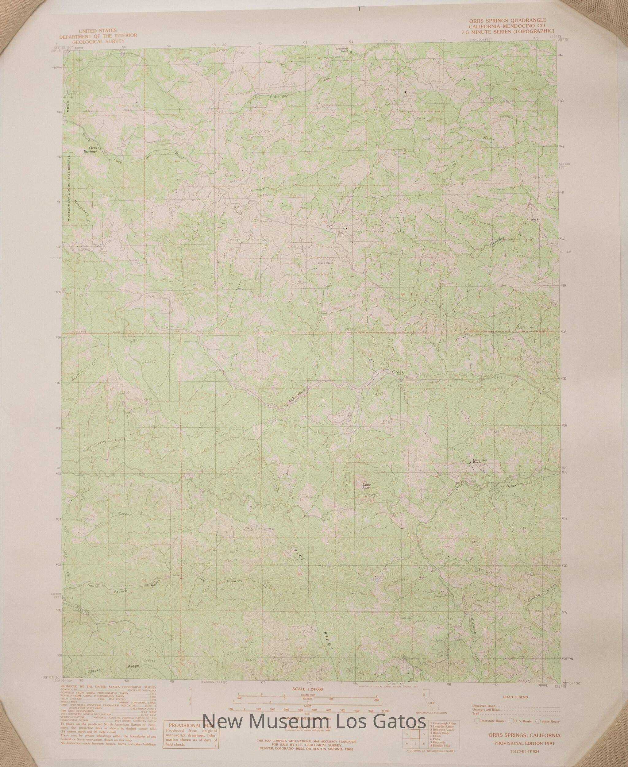 A topographic, color map of the Orrs Springs quadrangle in Mendocino County, California.Collection