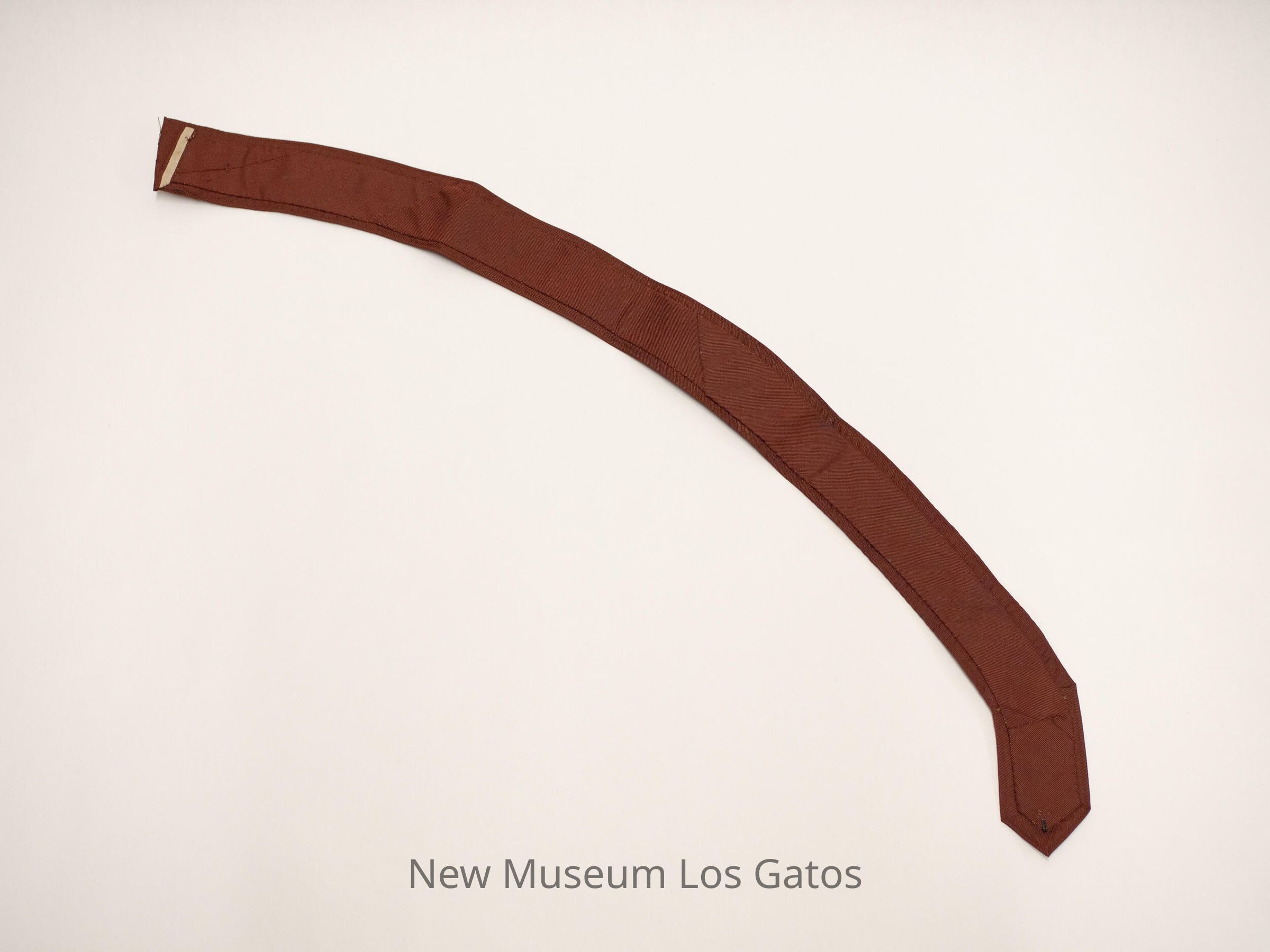 Women's maroon cotton belt with stitched detailing. Belt is pointed at one end. There is an eyelet sewn on the front, towards the flat end, and a hook sewn on the back, at the point.Collection