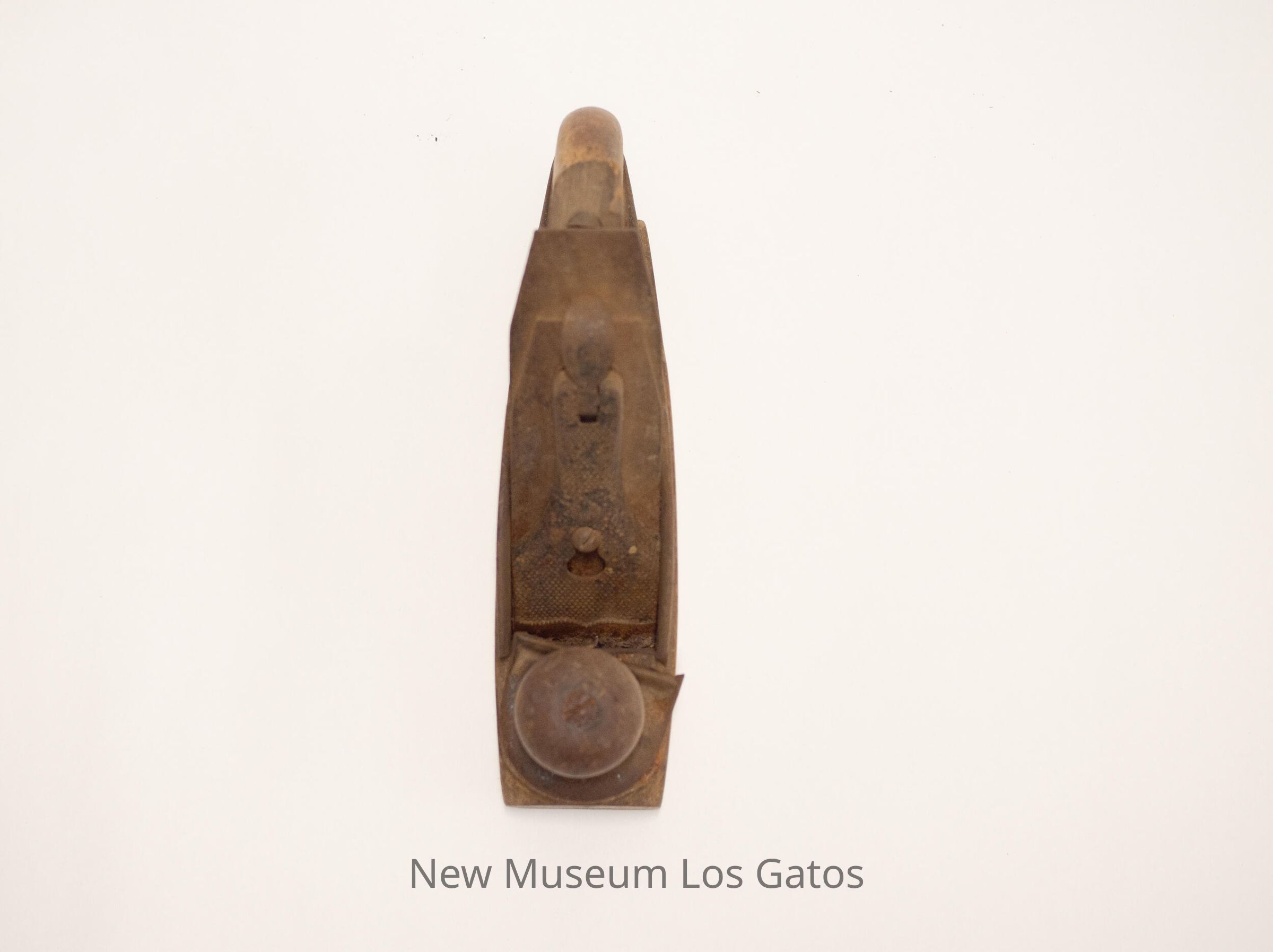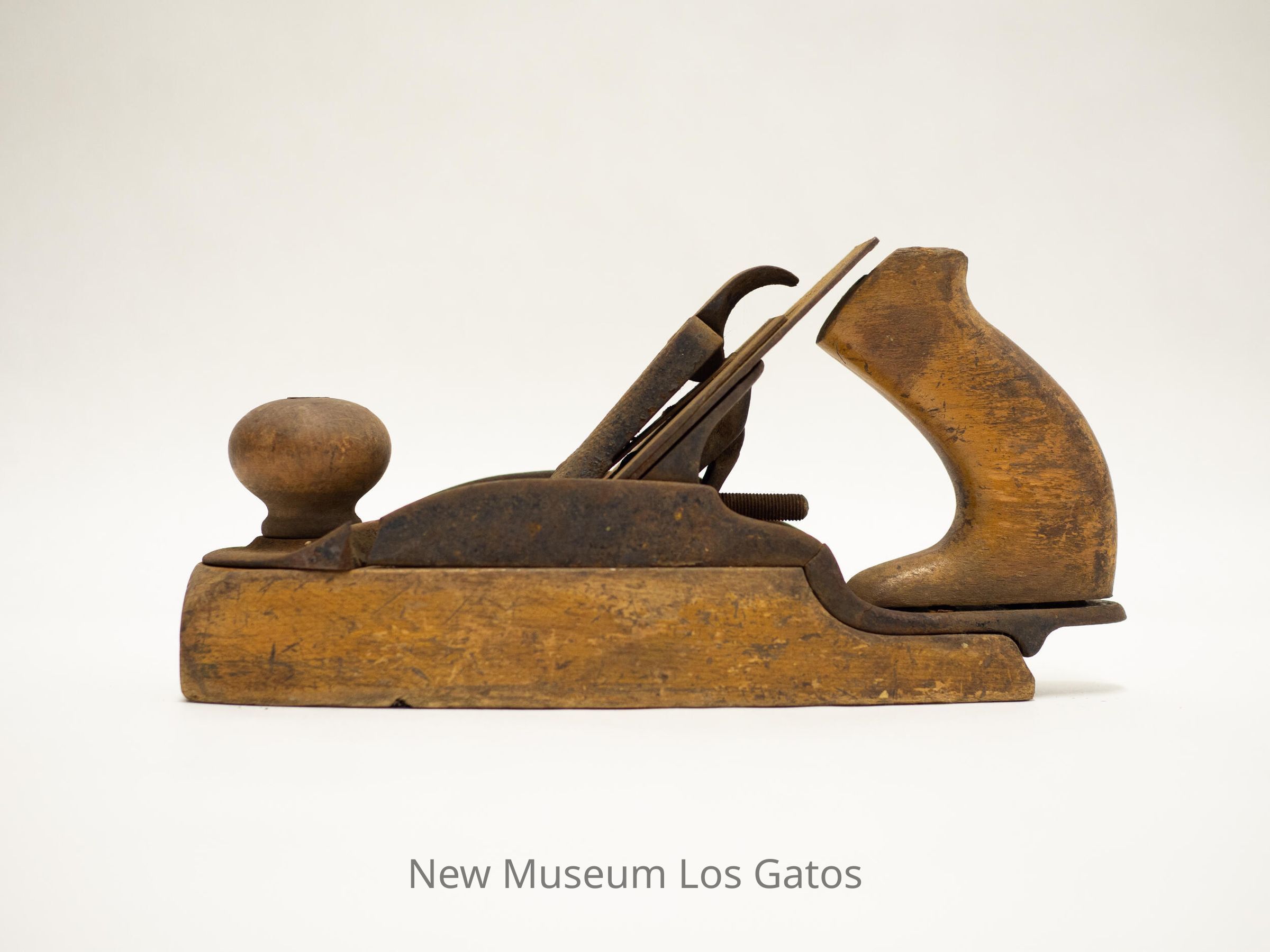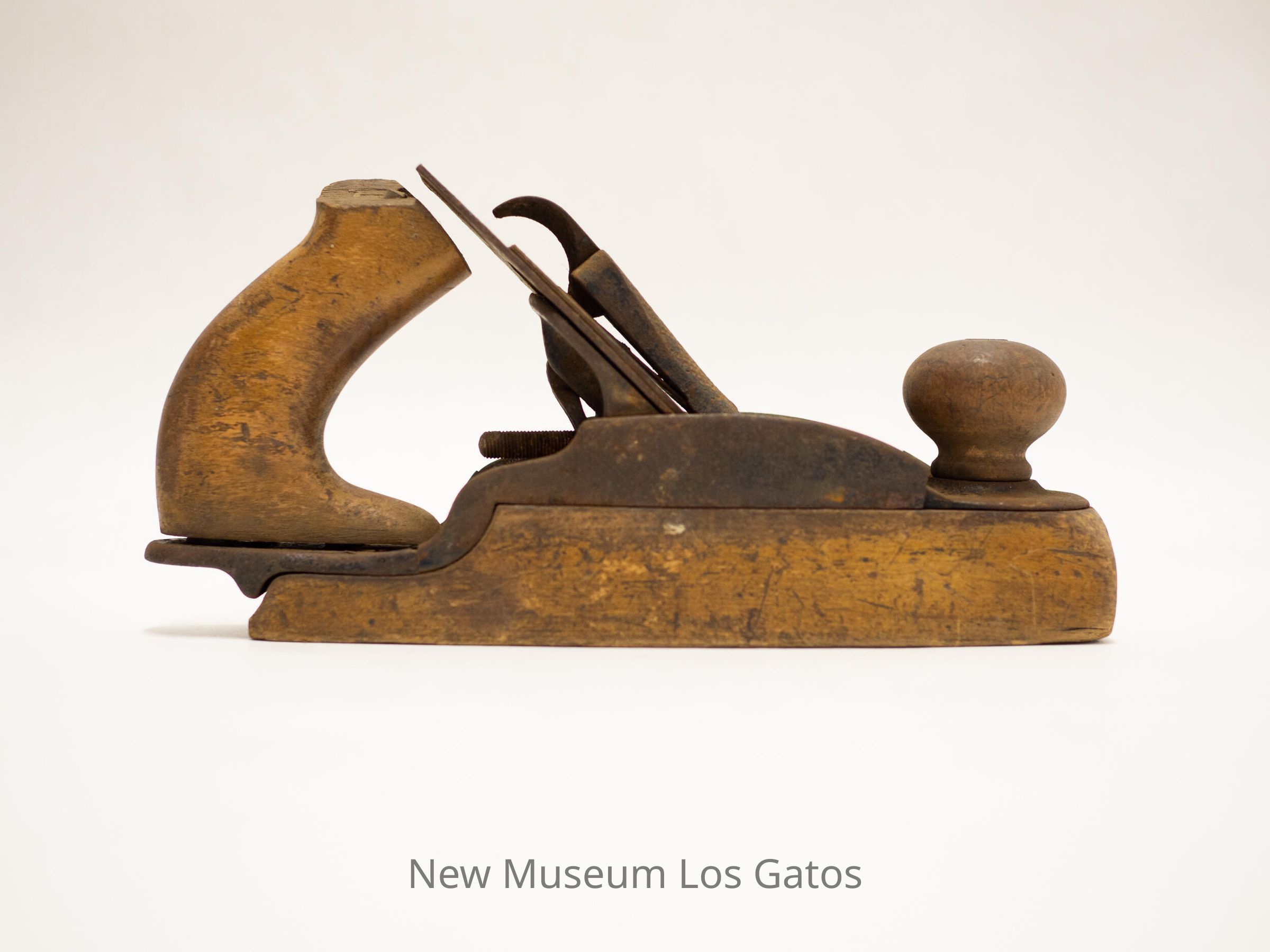 Wood plane with wooden base and handle, and metal knob and inner workings.Collection