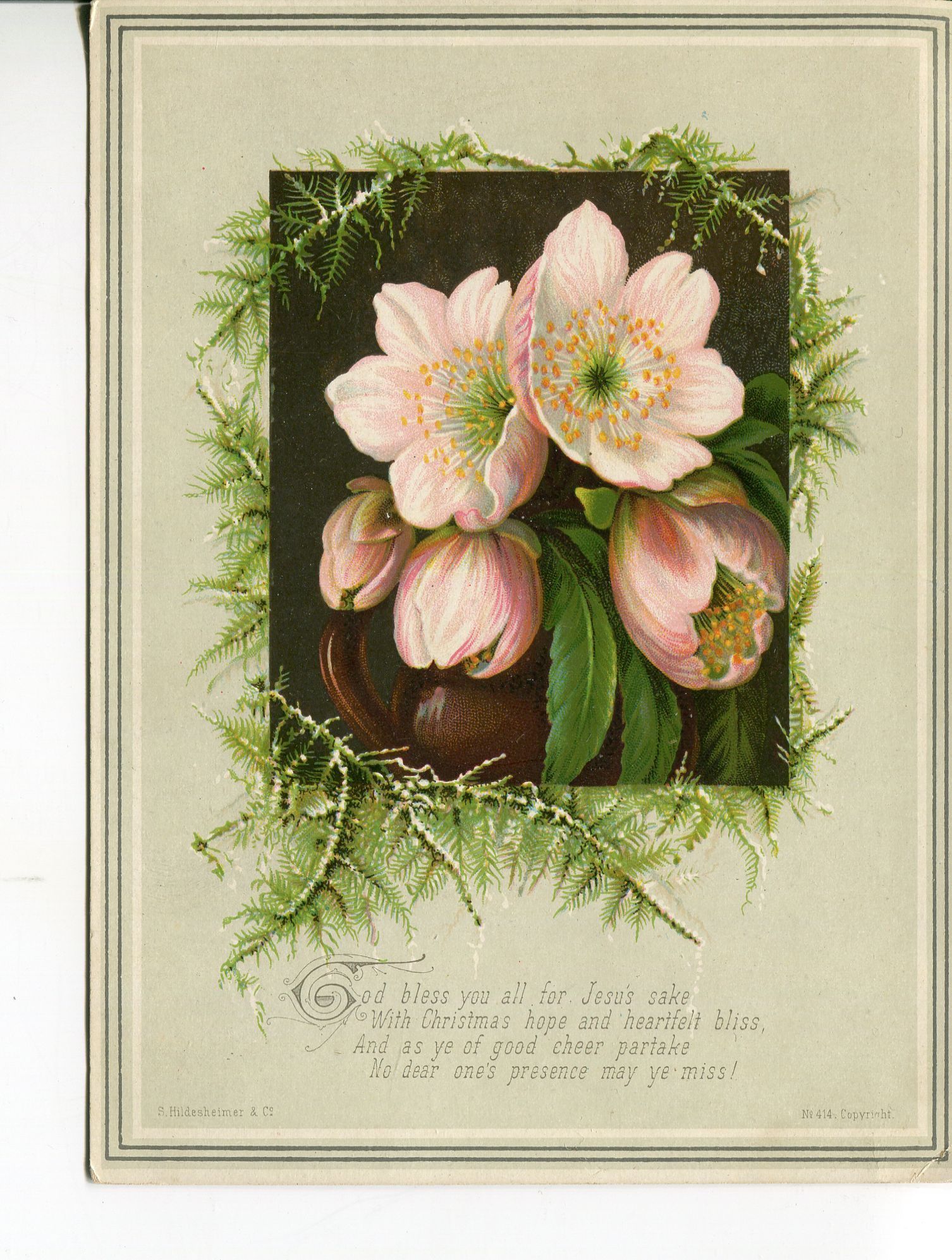 Christmas Card to W.H. Chaplin from J.D Roberts. Card has a box in the centre with flowers and some foliage boardering it. The card reads: