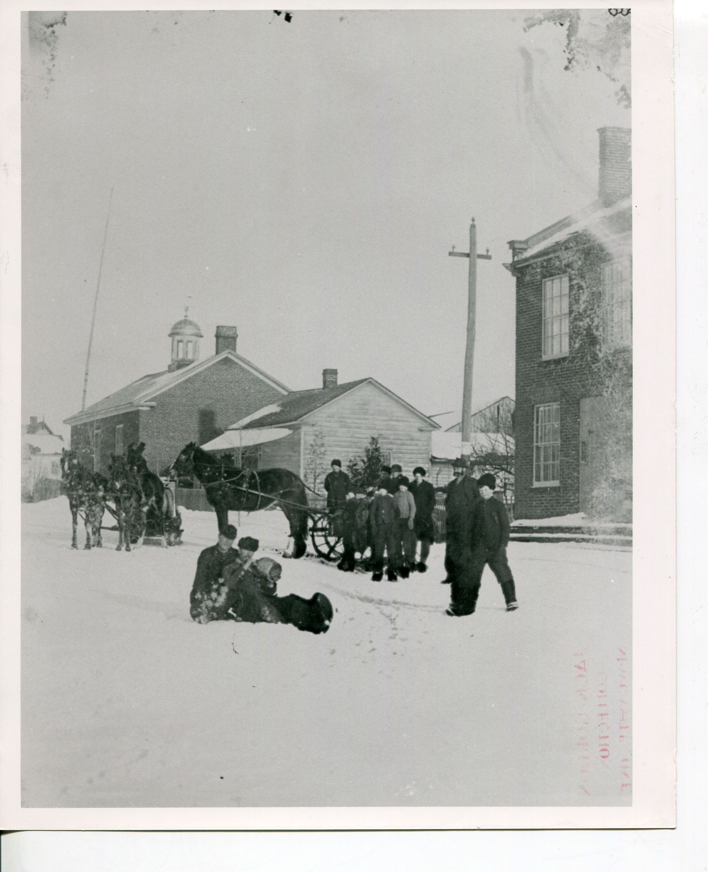 Photo of People playing in Snow with Horse Drawn Buggy in Newtonville