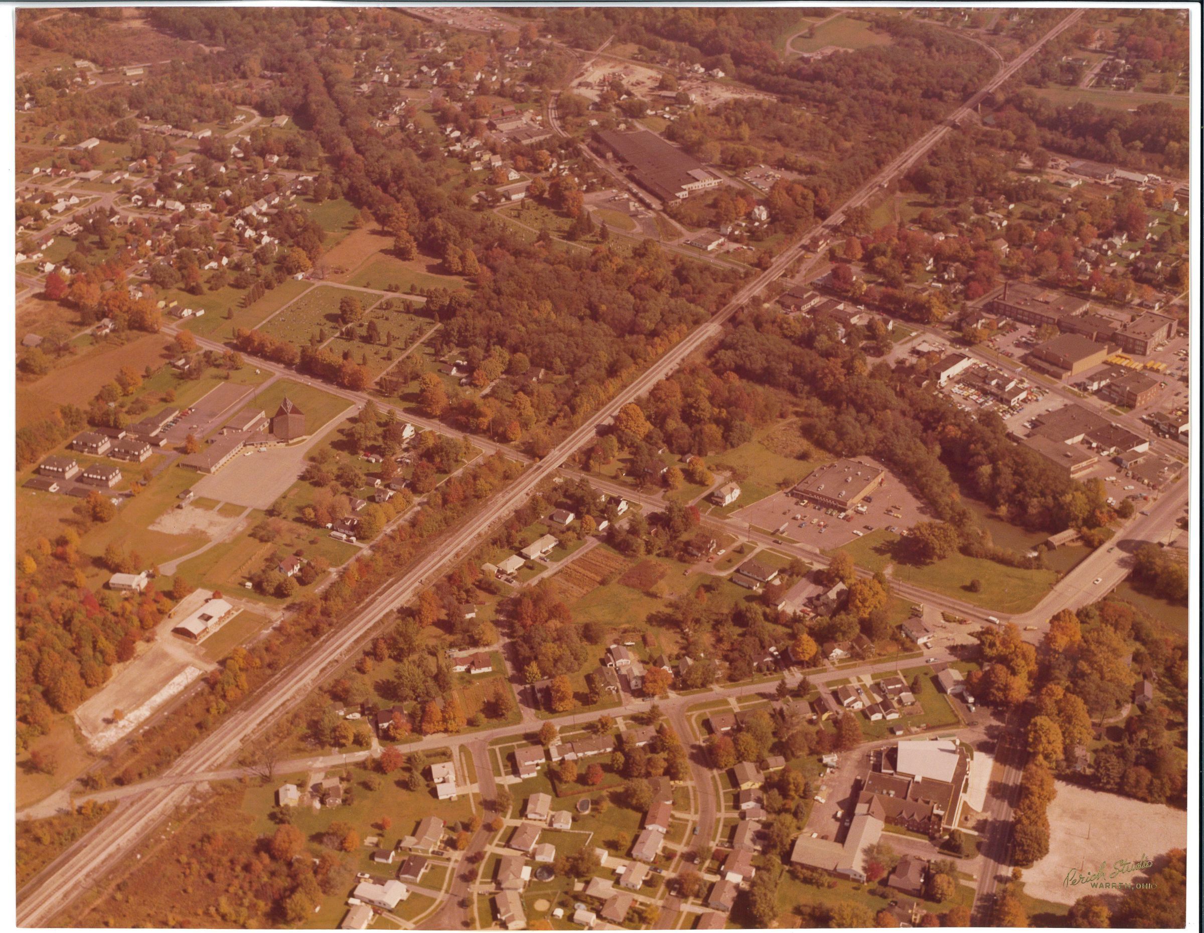 An Aerial View of Newton Falls, Ridge Road, Broad Street and North Canal. B&O railroad line.Photograph Details