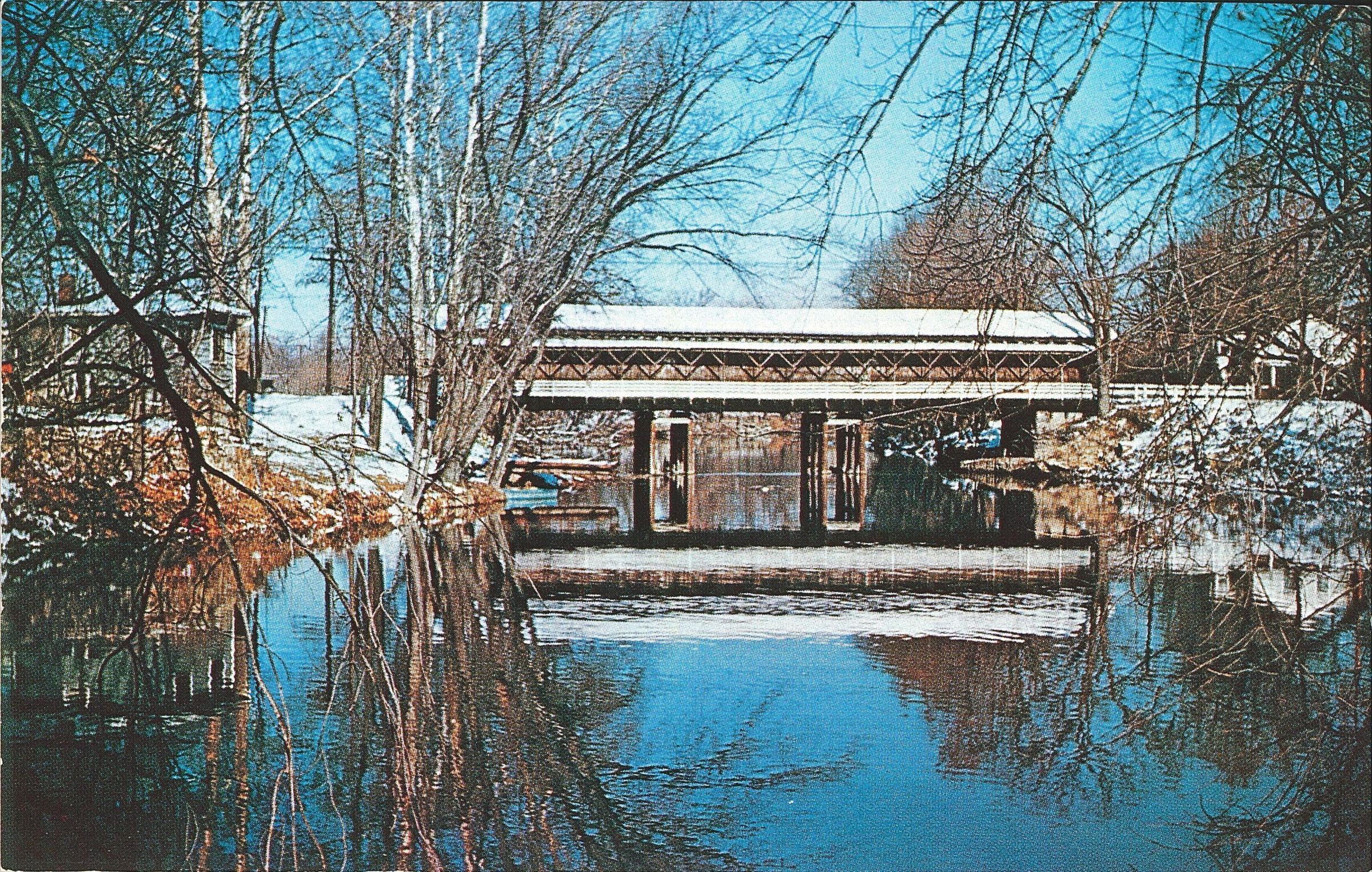 TRUMBULL COUNTY COVERED BRIDGE #35-78-01, NEWTON FALLS, OHIO Over E. branch of Mahoning River, 123 ft., 1831 year. Town Lattice type, with sidewalk and has been known to be called the Street Car Bridge. Photo by CARL I. LAWRENCE of Perry, Ohio.