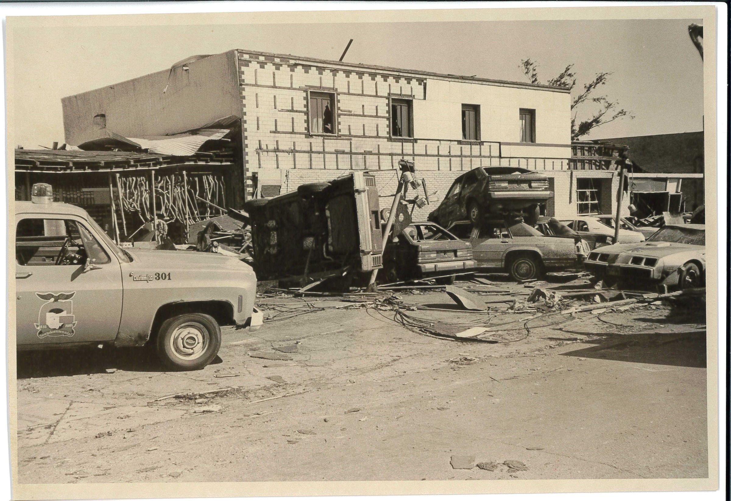 Tornado damage at Verillion Ford on North Canal StreetPhotograph Details
