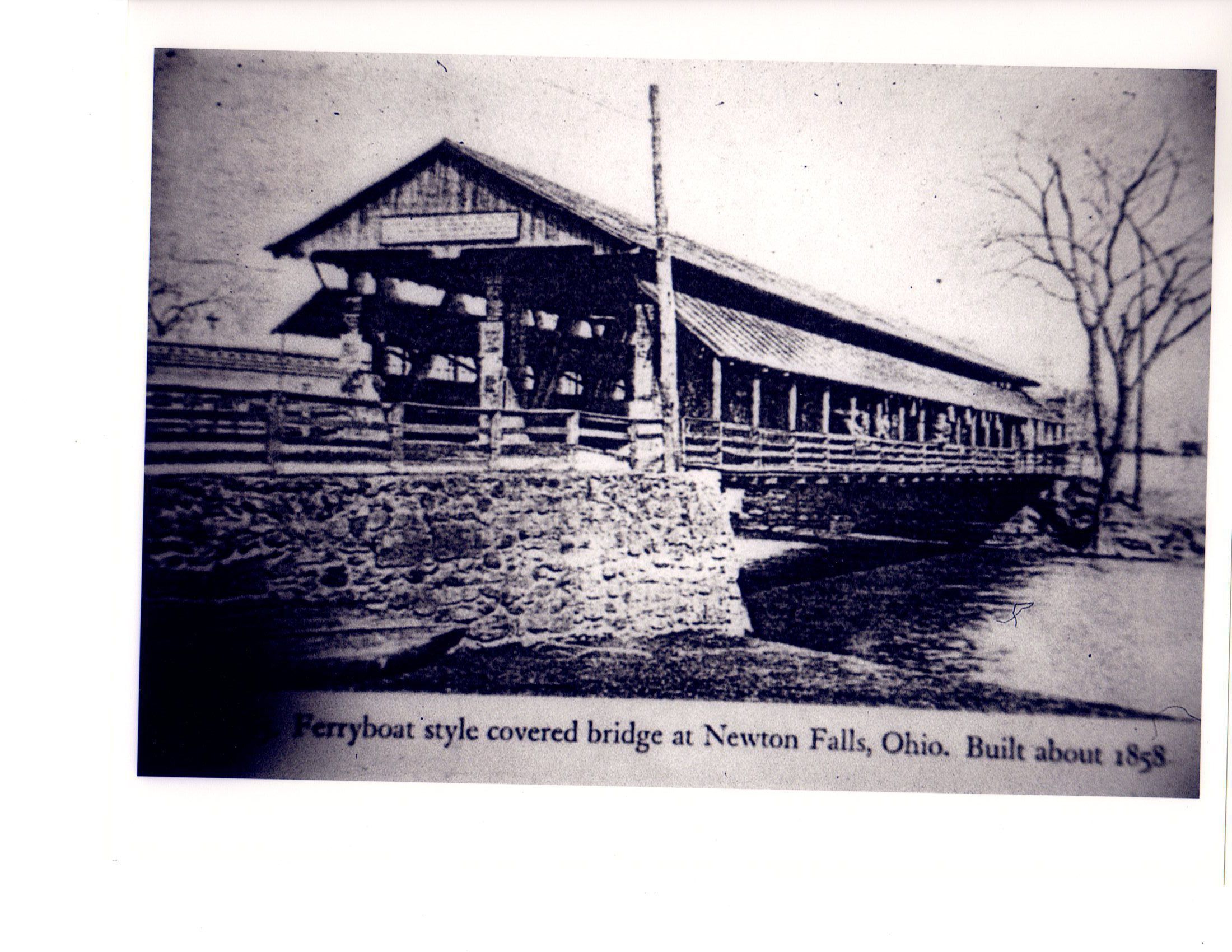 The Covered Bridge over the west branch of the Mahoning River looking east from the Butts family lawn.Photograph Details