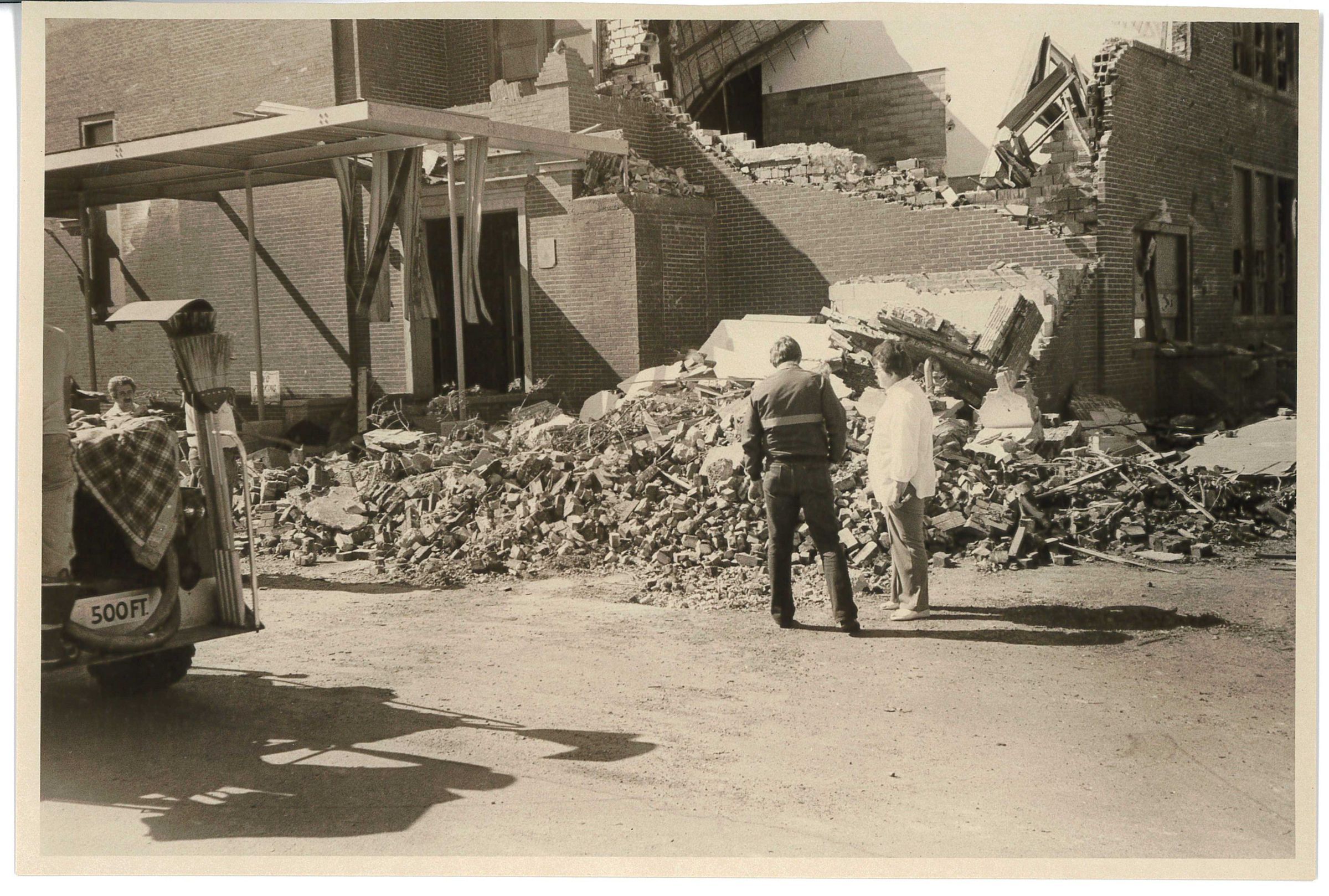 Tornado damage to the Newton Falls Junior High building on Jay Street.Photograph Details