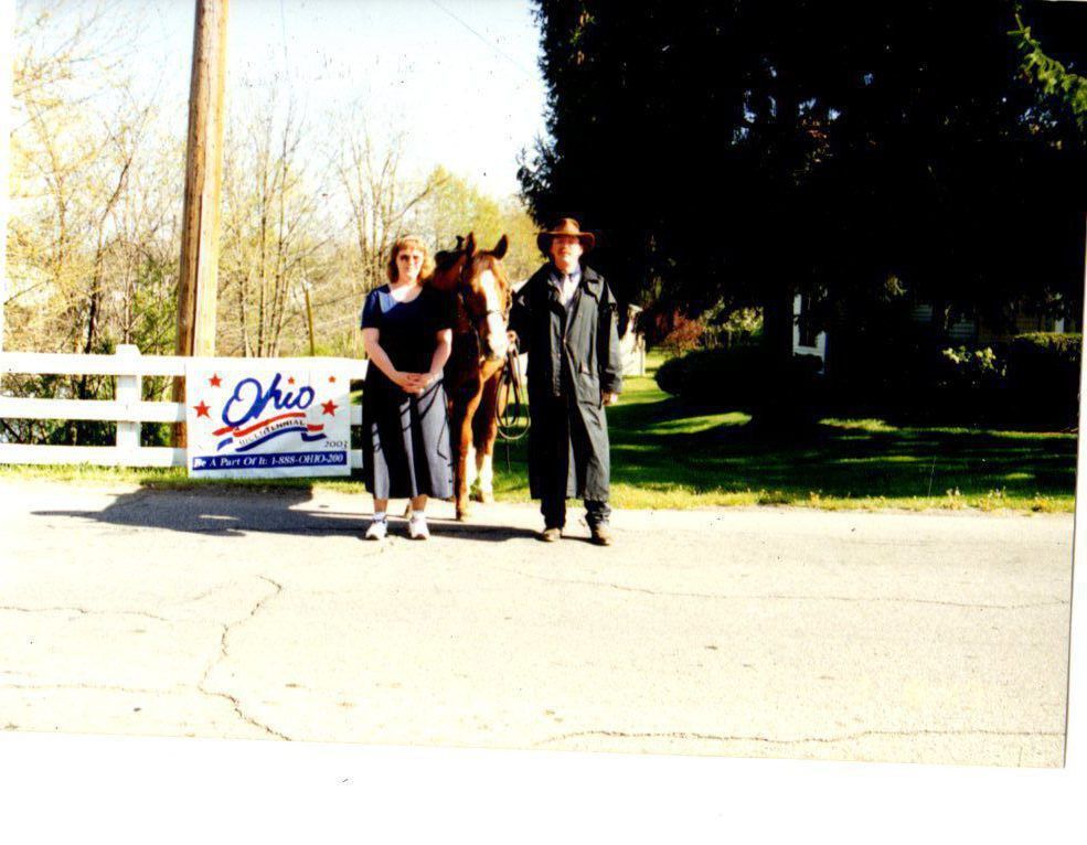 A couple pose with a horse for the 1999 Covered Bridge Dedication.Photograph Details