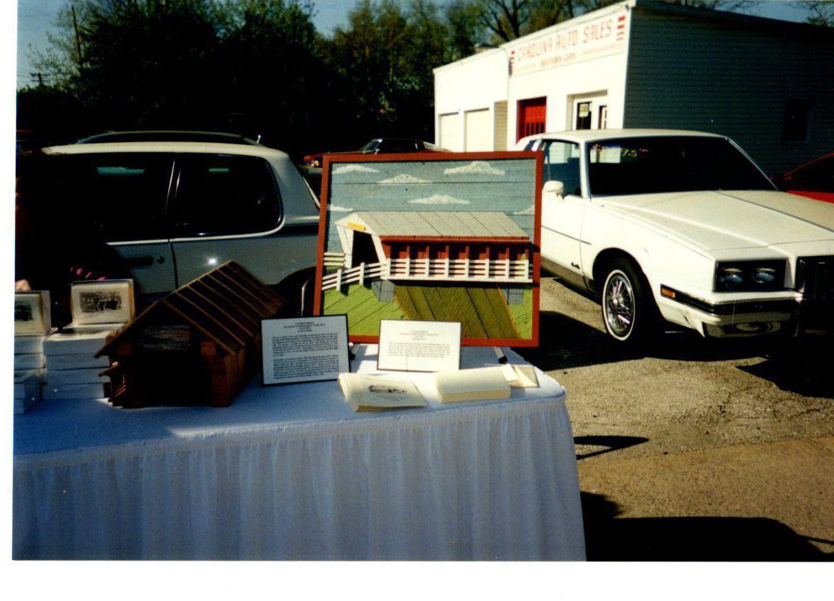 A photo that was taken during the Covered Bridge dedication. Shown is the Friends table displaying the model built by a Newton Falls resident.Photograph Details