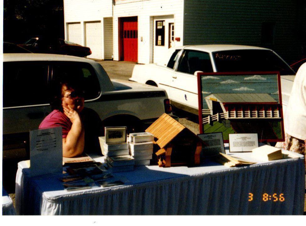 A table with Covered Bridge items for sale at the Covered Bridge Dedication in 1999.Photograph Details