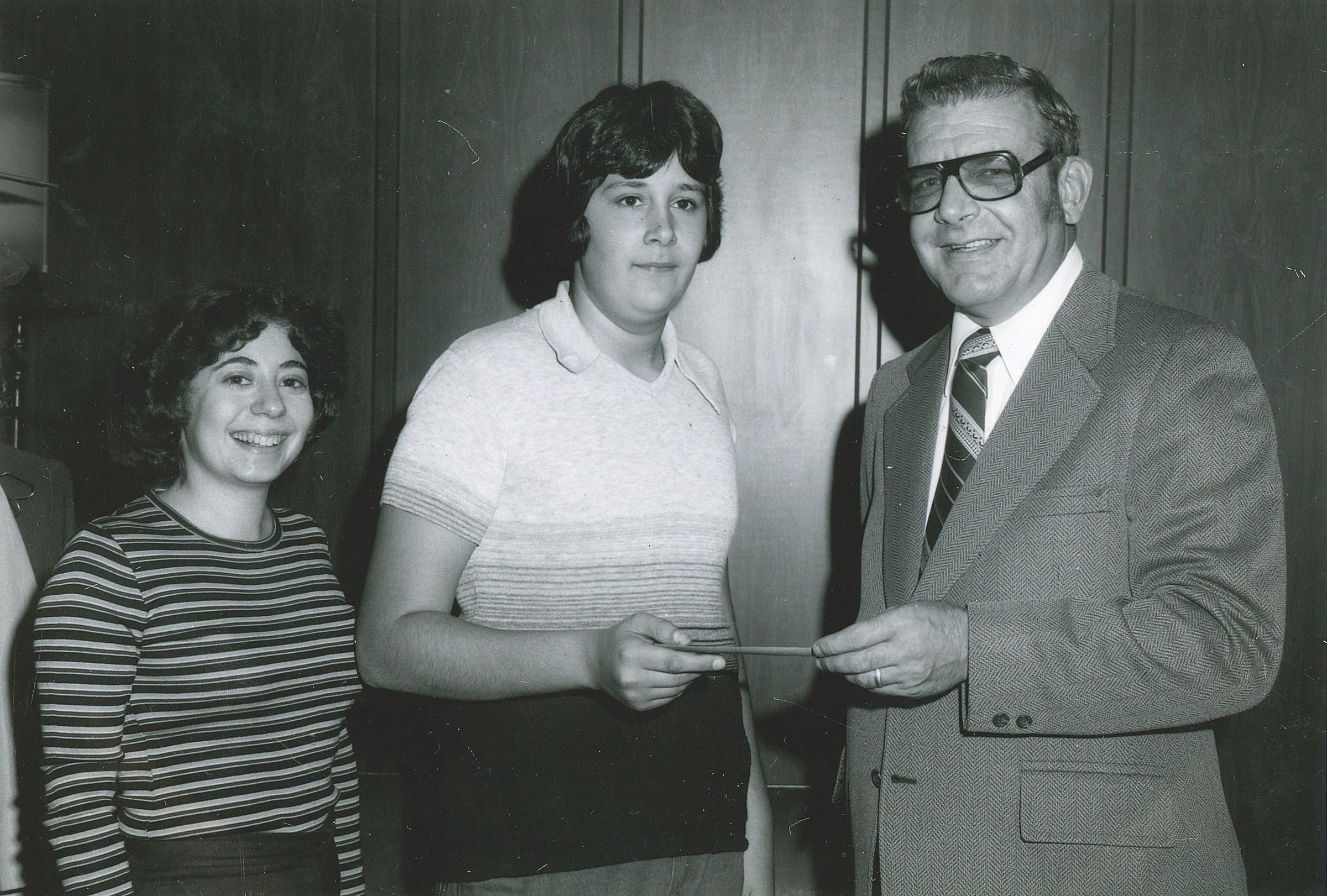 Mark Gianpapa, center, receives the $25 first prize for designing the logo for the Newton Falls Chamber of Commerce. L-R: Chamber Director Lynn Baumblatt, Mark Gianpapa and treasurer Kenneth McGregor.Photograph Details