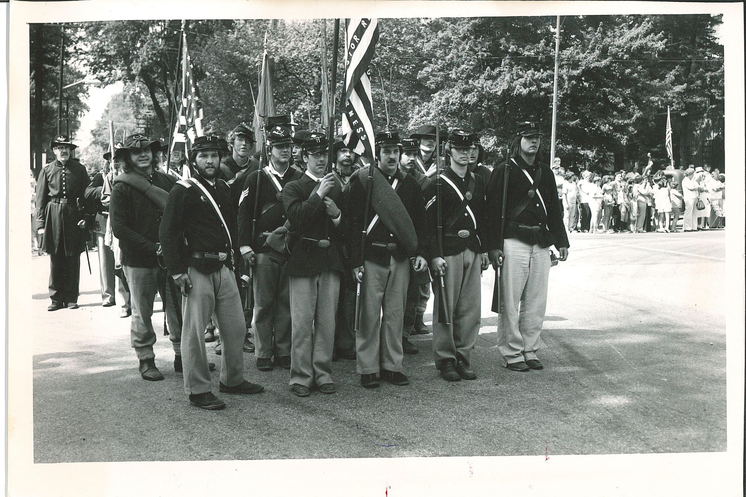 Civil War reenactors in formation. Part of the 1975 Bicentennial celebration.Collection