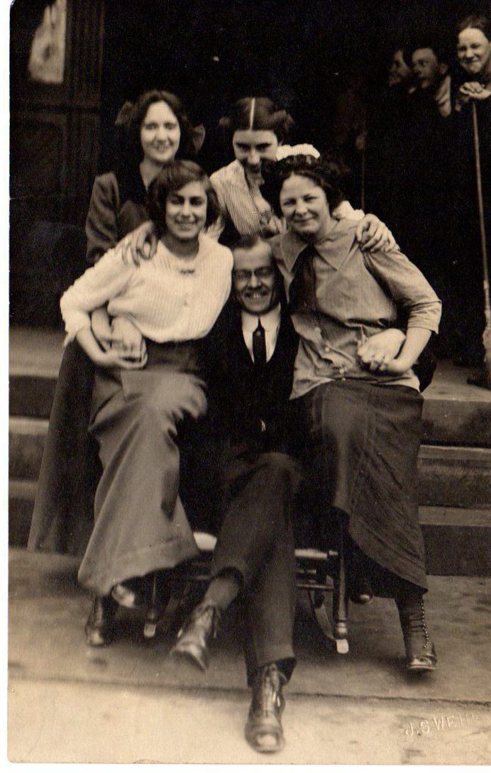 "Mischief Committee" Teacher: Clifford F Rall. Front: Helen White, Frances Taylor Back: Lena Weiss, Bess Harnar.Collection