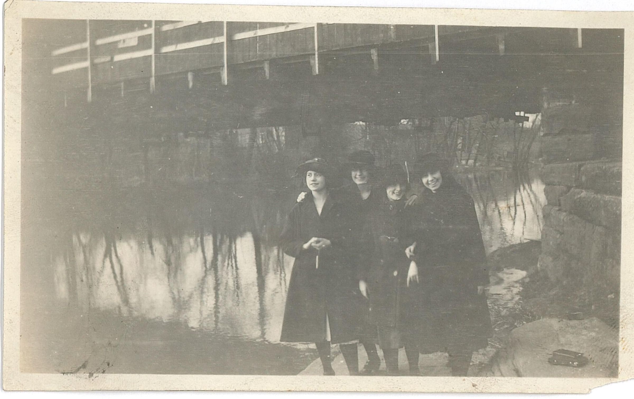 Unidentified people standing under the covered bridge over the east branch of the Mahoning River. The bridge was built around 1831 and a covered walkway was added in 1921. Photo taken circa late 1920's, early 1930'sCategory