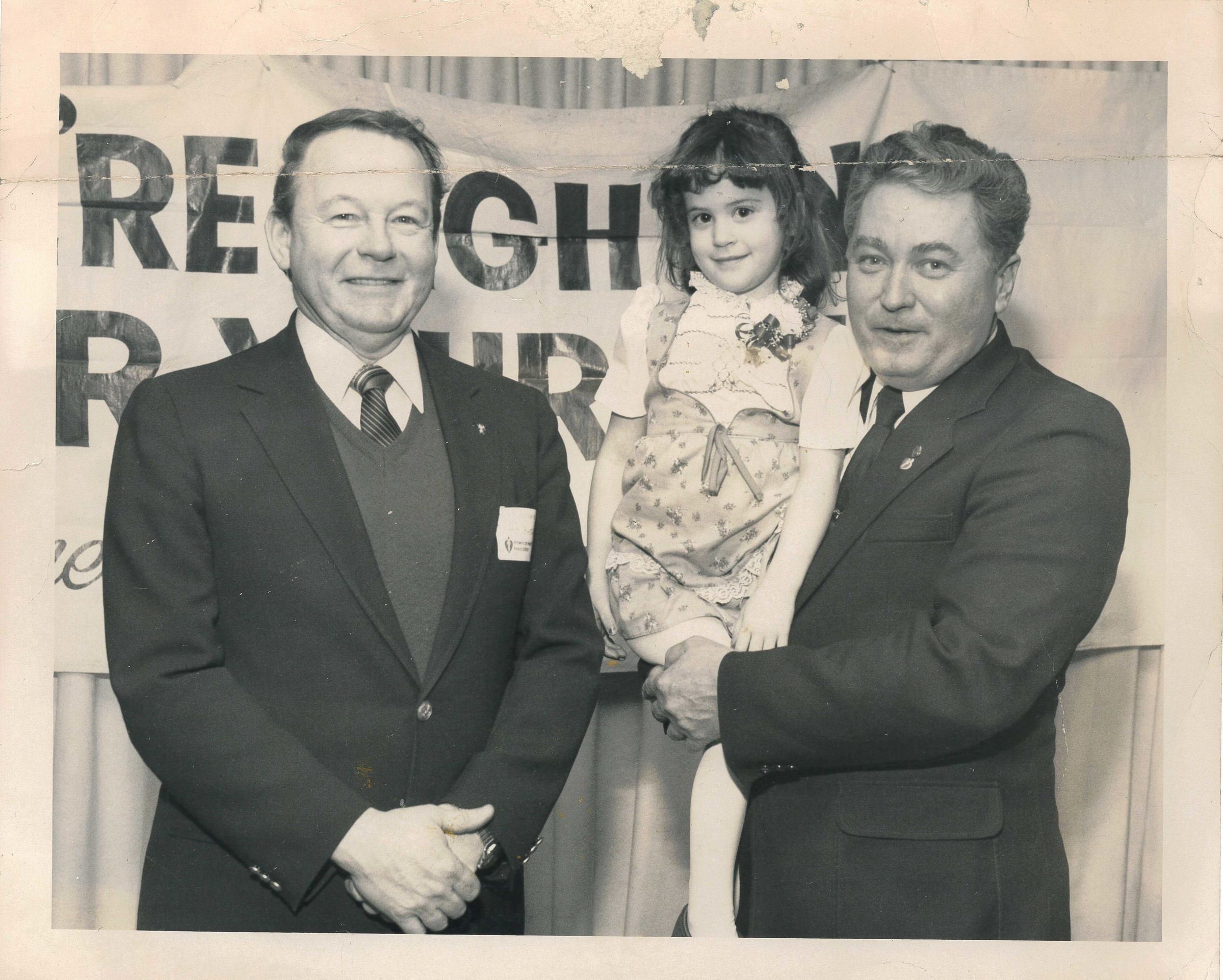 The volunteers for the American Heart Association, left-right: Frank Pliszka, Newton Falls Heart Divine Chairman, Randee West, Sweetheart for the Eastern Ohio Chapter of Canfield, secure in the arms of Trumbull County Campaign Chairman, John Ughrin.Photograph Details