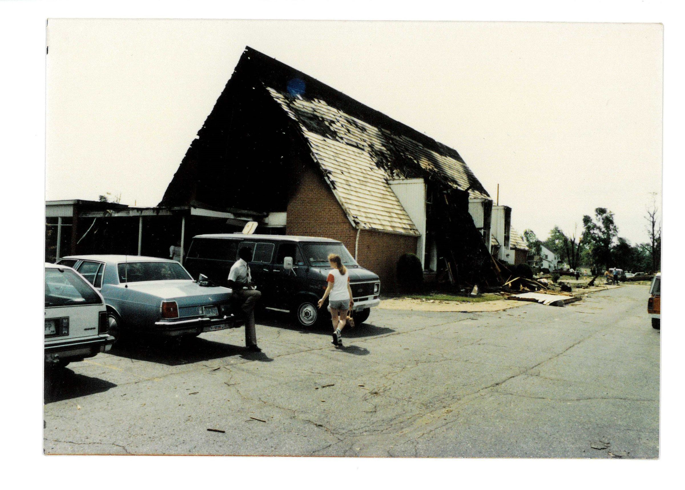 The Congregational Church on Charleston Road/West Broad Street. The damaged church had a fire the day after the totrnado.Photograph Details