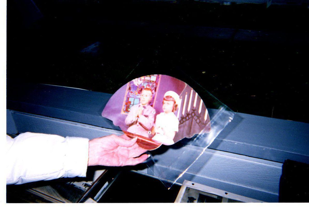Velma Jacob holds out one of her treasured cards. This one is from the business of Falls Dry Cleaning, year unknown.Photograph Details