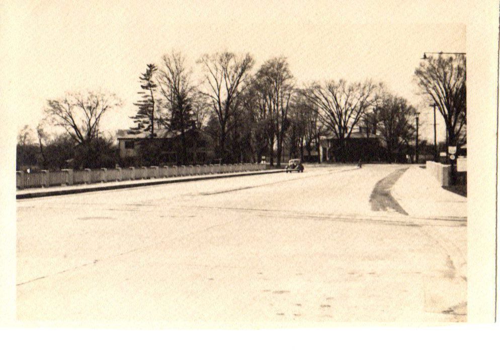 The new Broad Street Bridge on West Branch of the Mahoning River by the Falls. House on the left is the Butts home. Center of photo would be present day First Church of God.Photograph Details