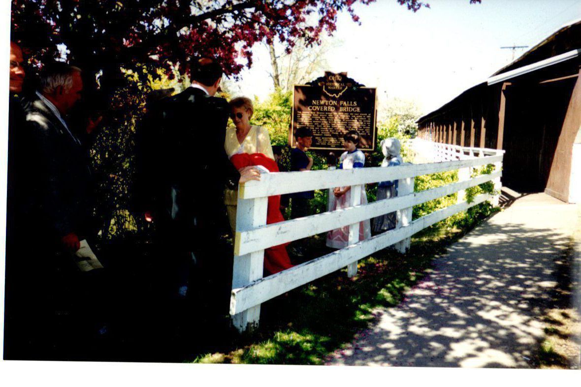 A resident of Newton Falls taking with Michael O'Brien near the Historical Marker for the Covered Bridge.Photograph Details