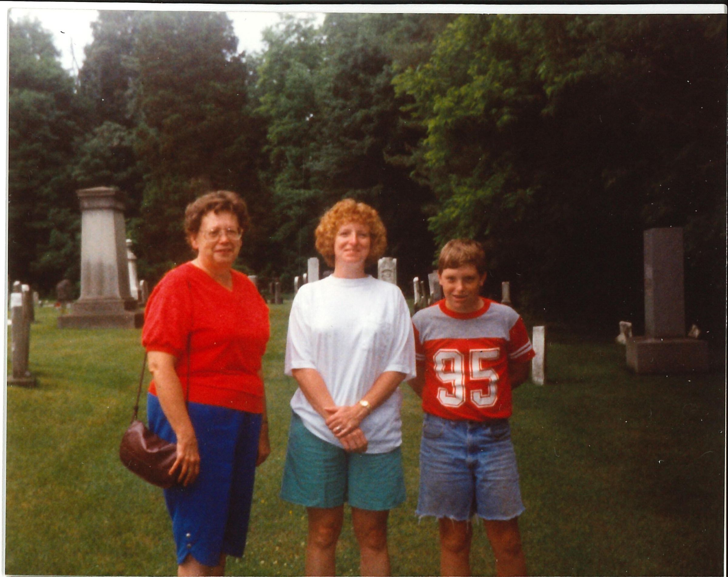 L-R Marty Douce, a member of the Cemetery Association, Linda Laughlin and her son David LaughlinPhotograph Details