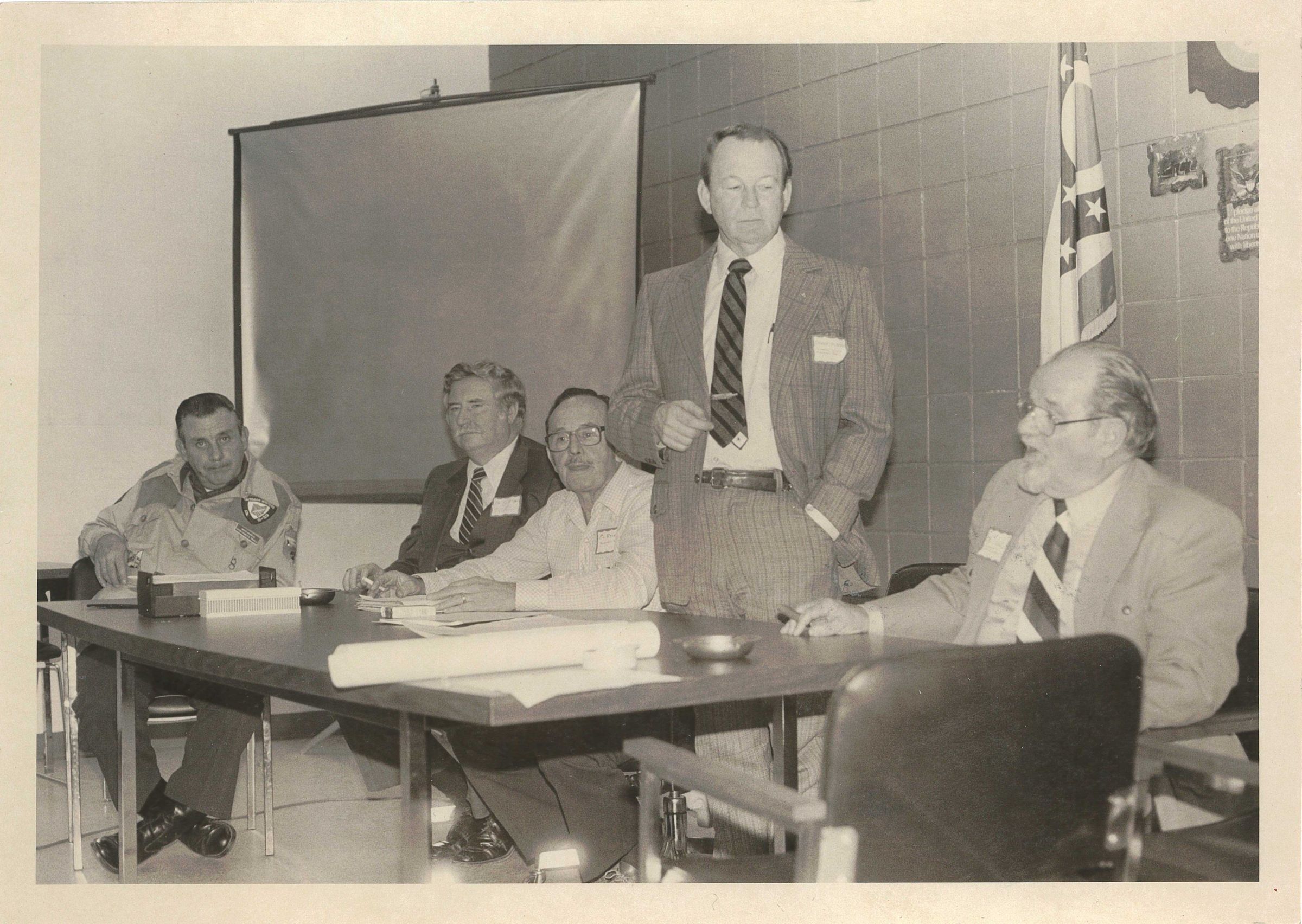 Speaking on the benefits to the Newton Falls area from the proposed Mahoning Canoe Trail Parks, L-R: Bruce Kmodel, Edward Kutevac, Al Rymer, Frank Pliszka and Ed Cleckner.Photograph Details