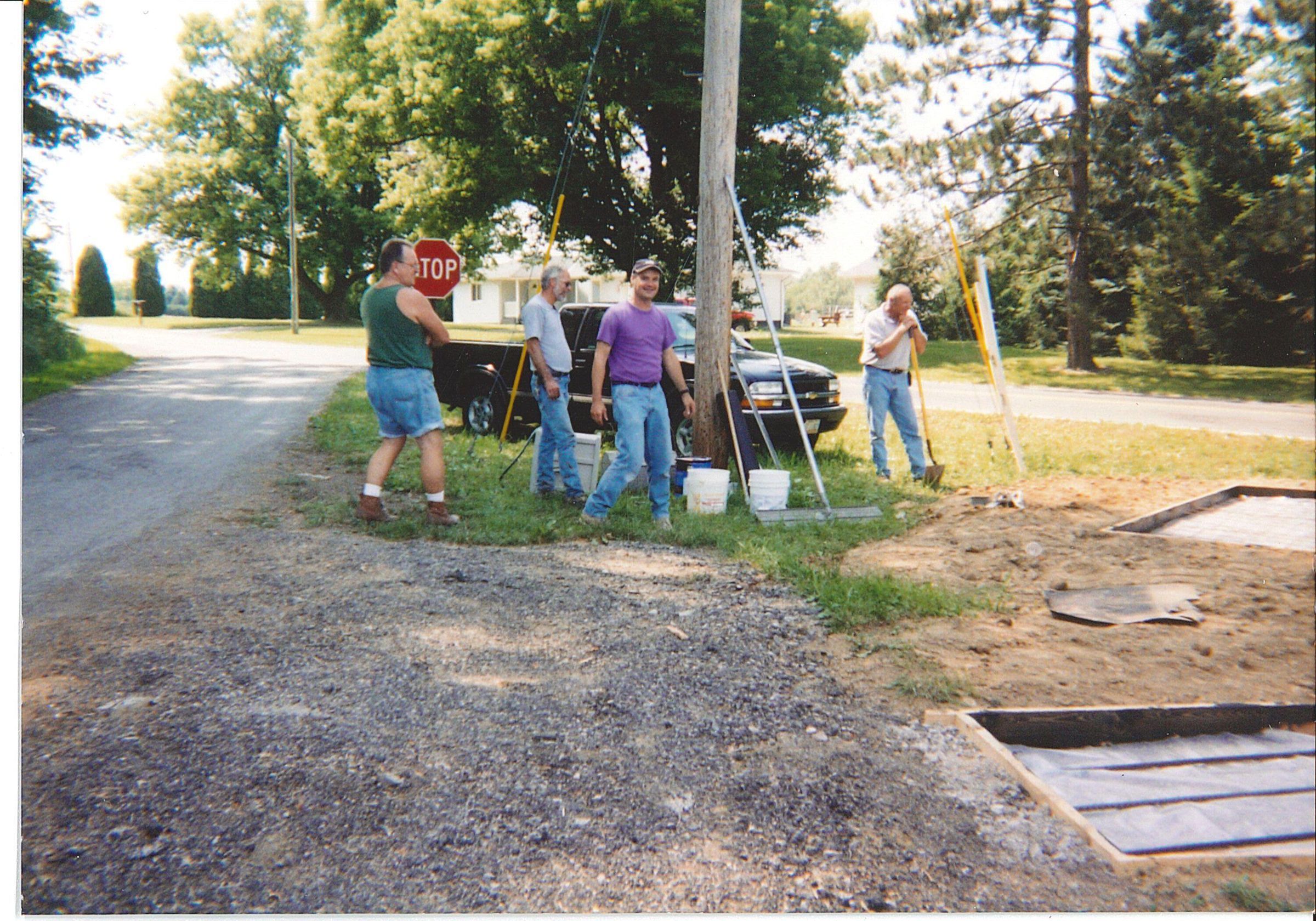 L-R: John Jakubec, Milton Township trustee, helped with concrete and brick work; Dave Ford, Newton Township road supervisor, helped prepare the site; Peter Augusta, Newton Township trustee; and Delbert Woloski, Newton Township trustee chairman.Photograph Details