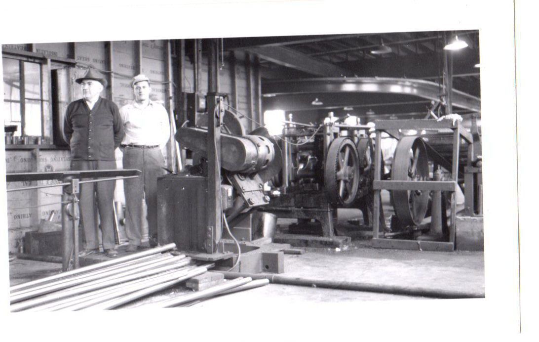 Falls Steel Tube employees James Lewis and Milan Sipka at the old forming mill in 1948.Photograph Details