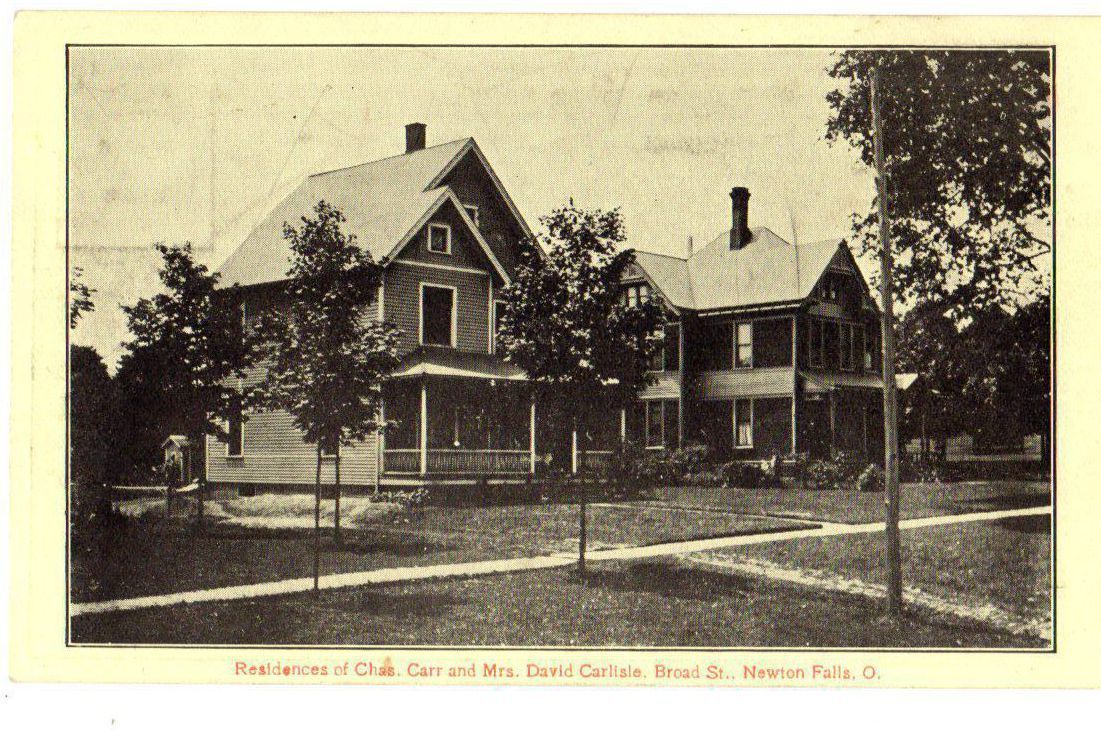 Postcard of Charles Carr and Mrs. David Carlisle East Broad street home. Located on Center Street and West River RoadSubject Person/Organization