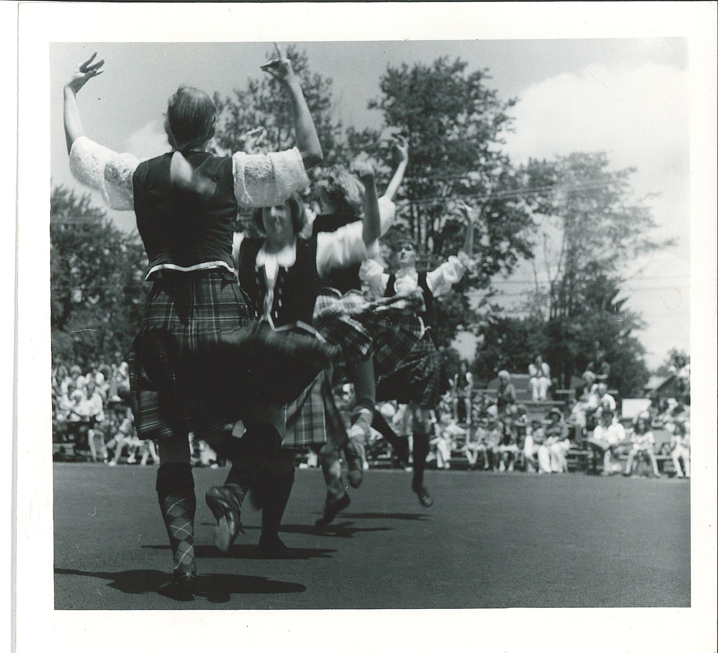 Cleveland Kiltie Band dancers performing at the Community Center Park. Part of the 1976 Bicentennial celebration.Photograph Details
