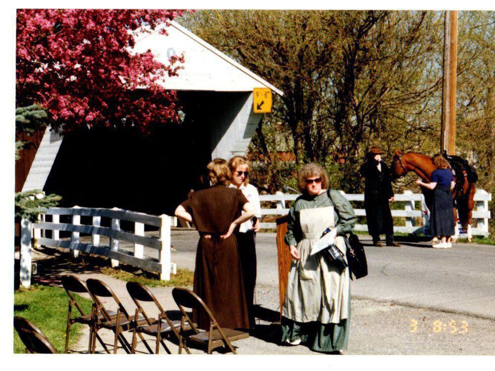 Residents near the Covered Bridge, Neil and Karen Armstrong with Whiskey in the back.Photograph Details